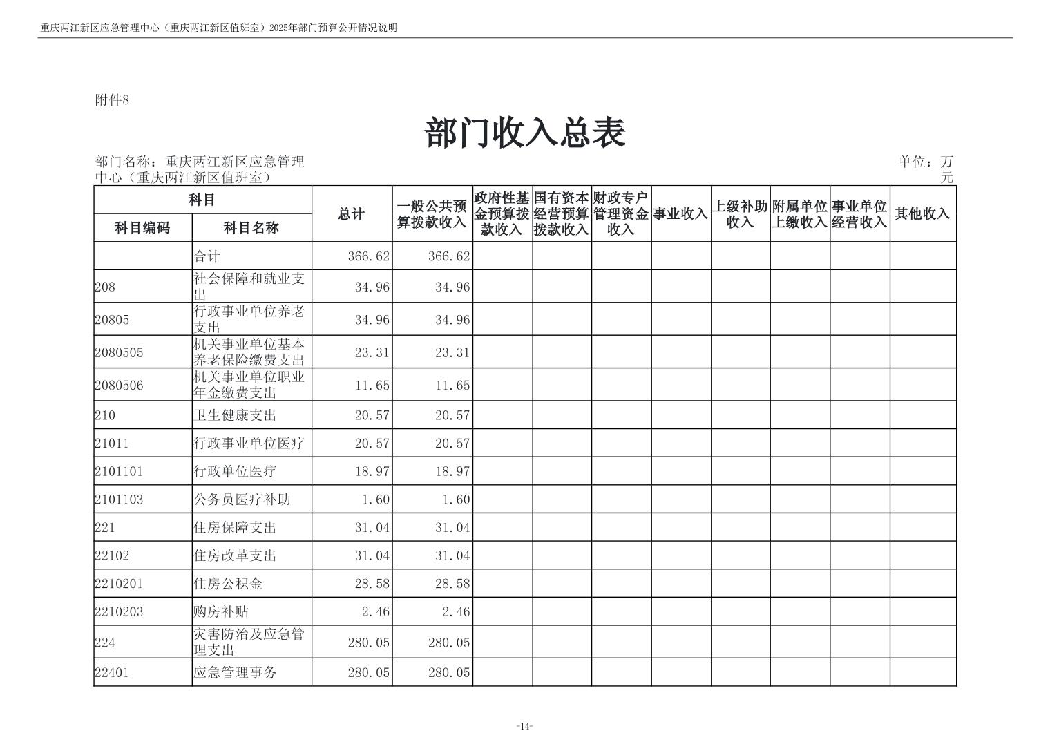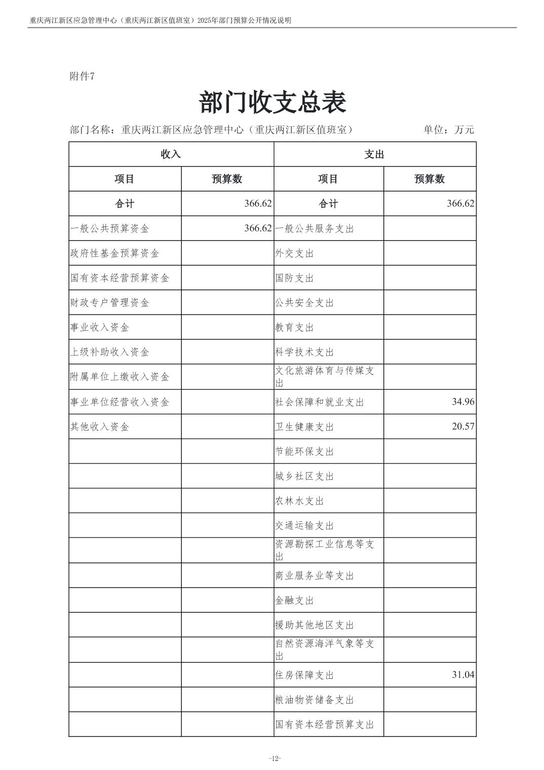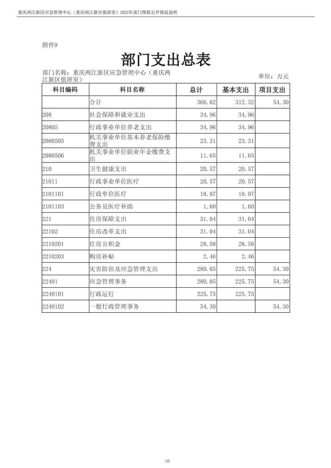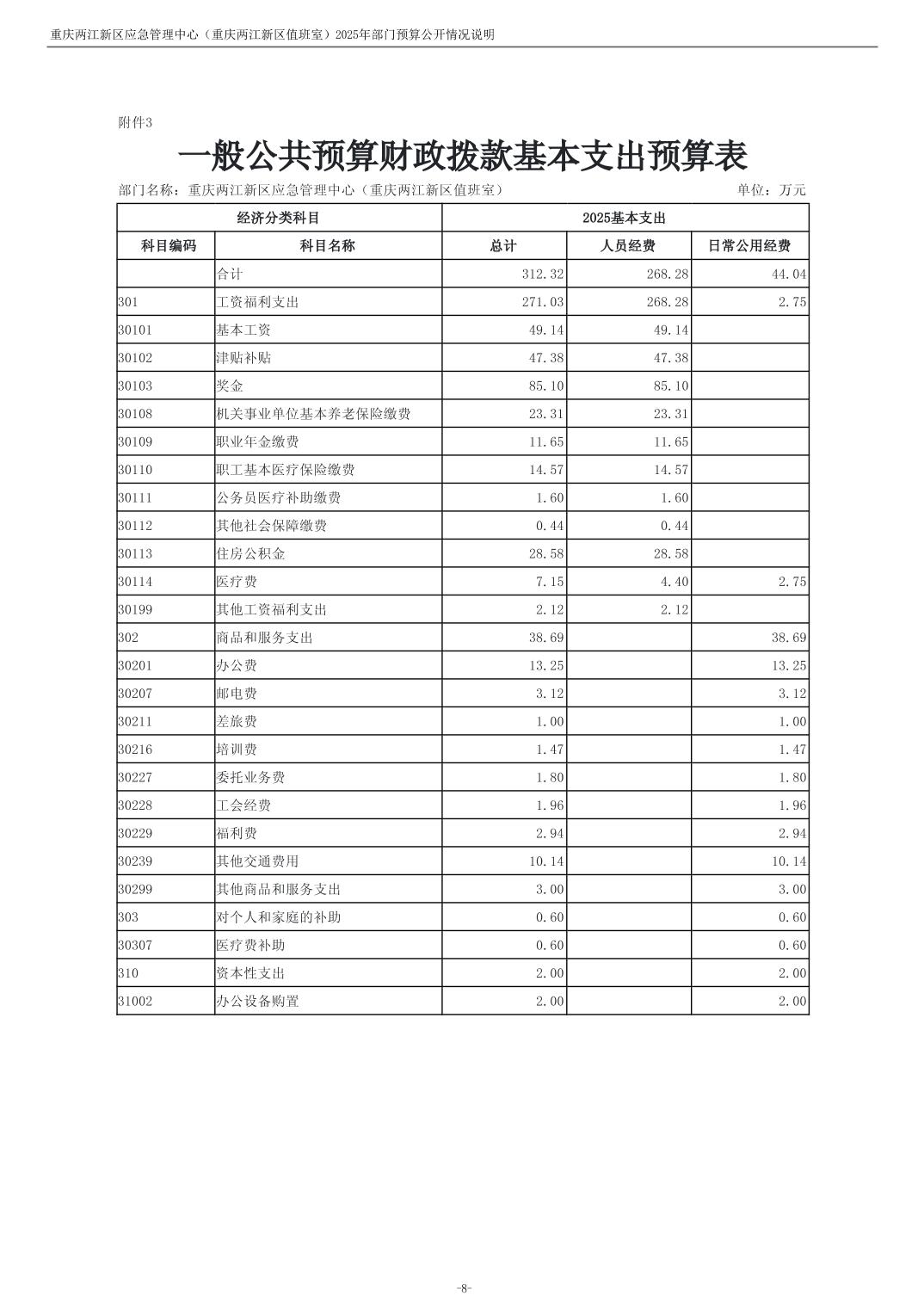 重庆两江新区应急管理中心(重庆两江新区值班室)2025年单位预算情况说明