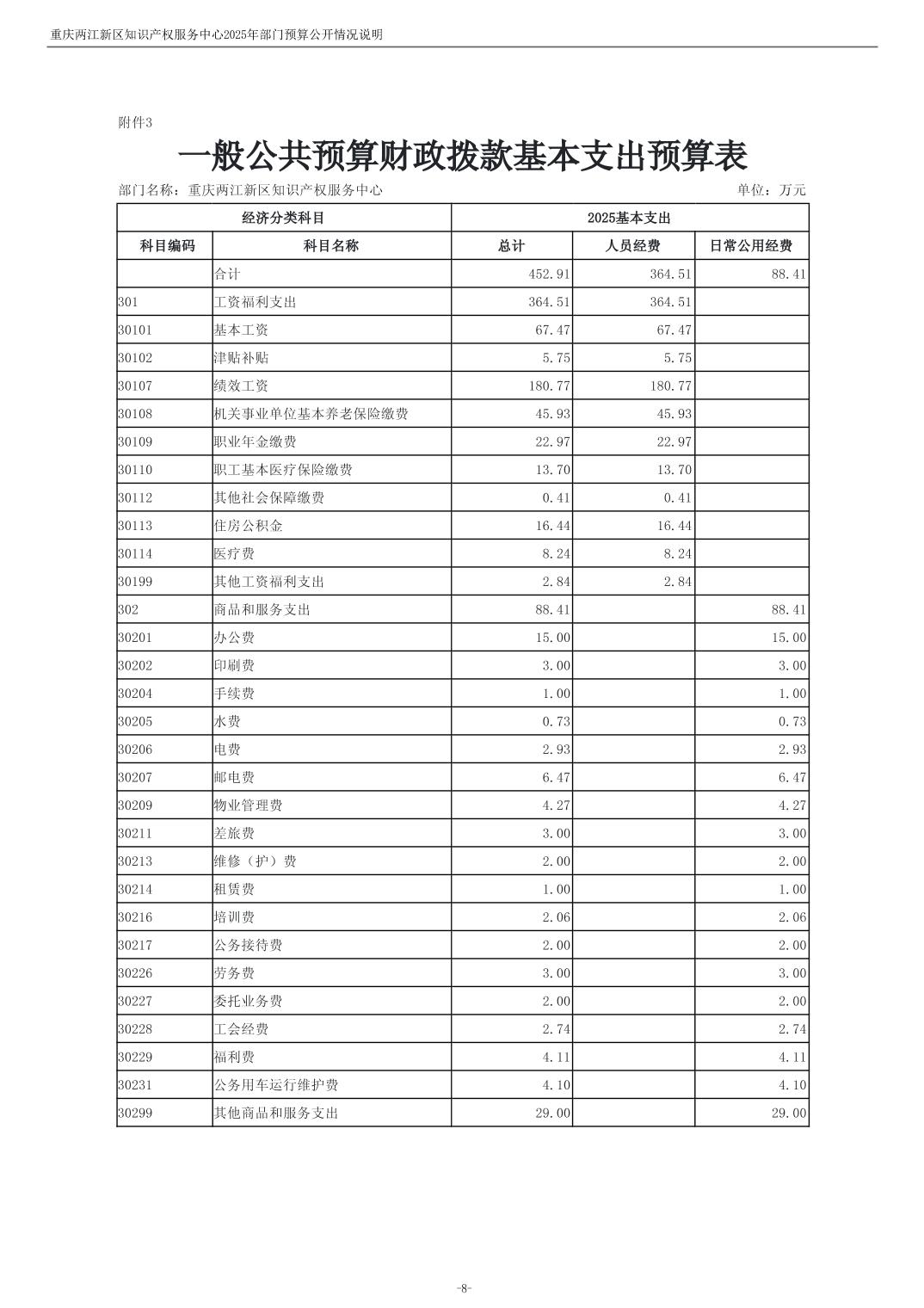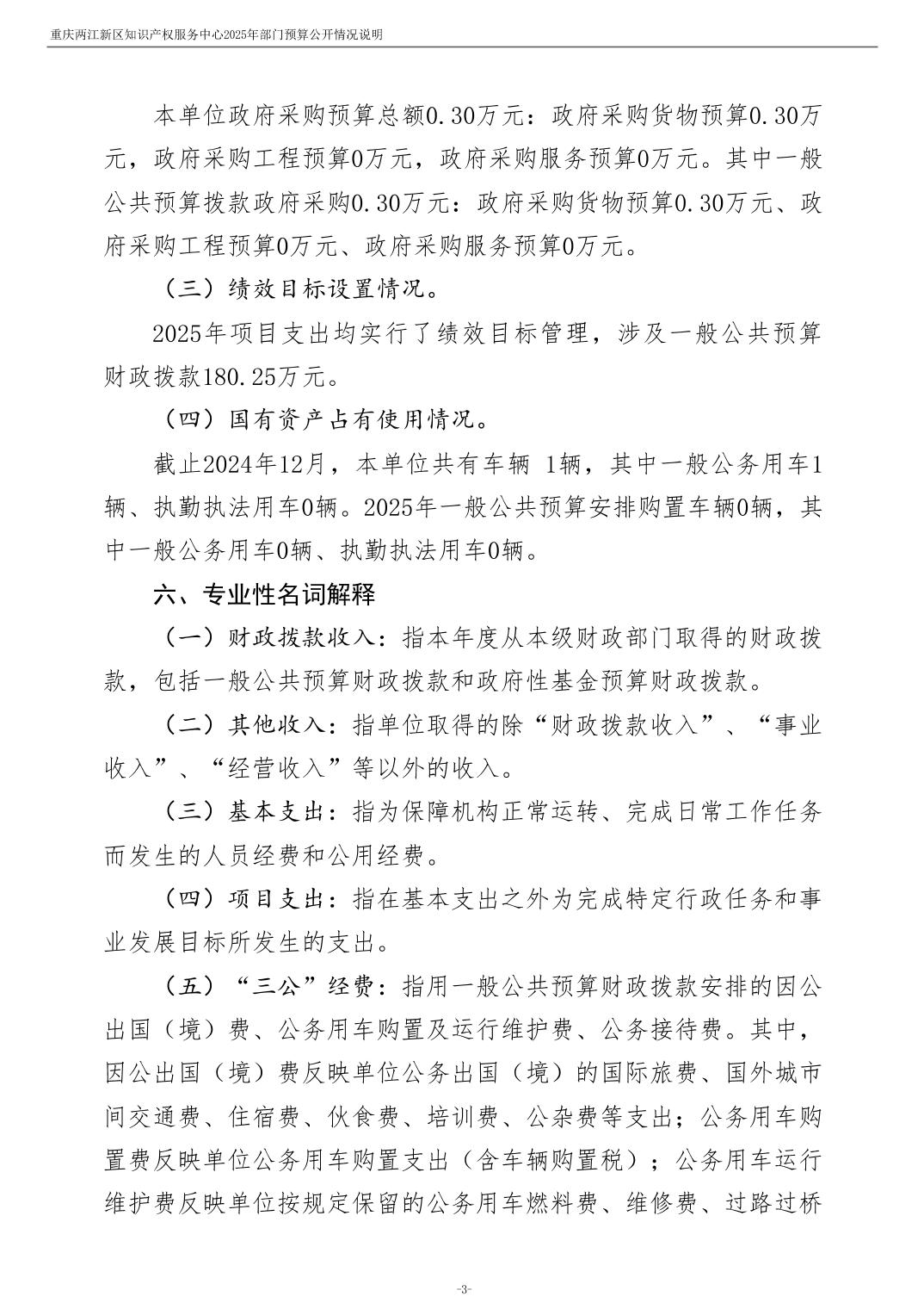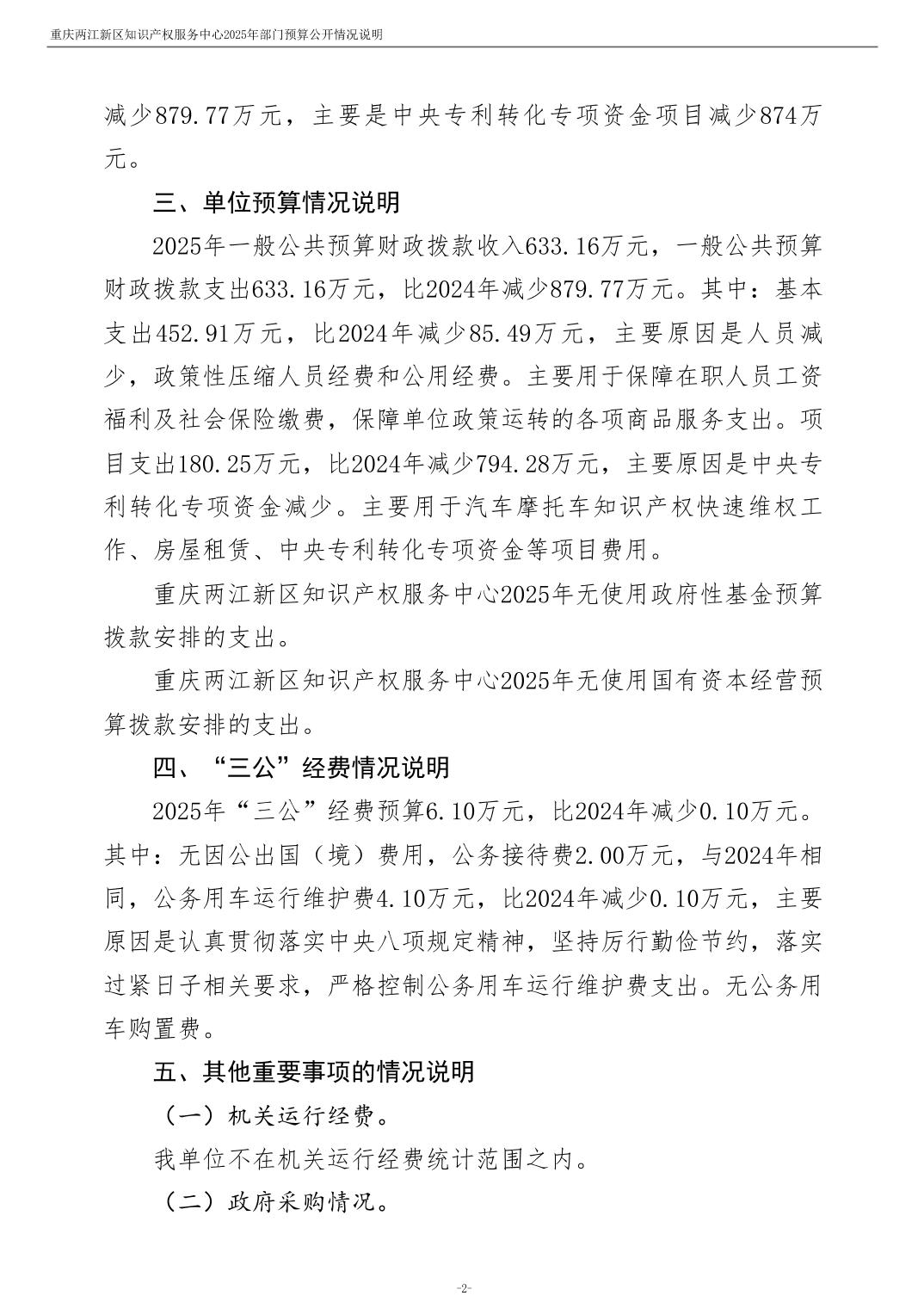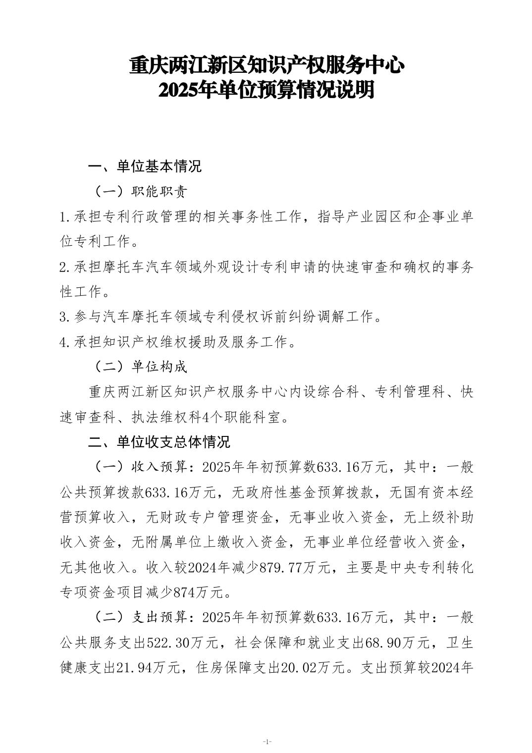 重庆两江新区知识产权服务中心2025年单位预算情况说明