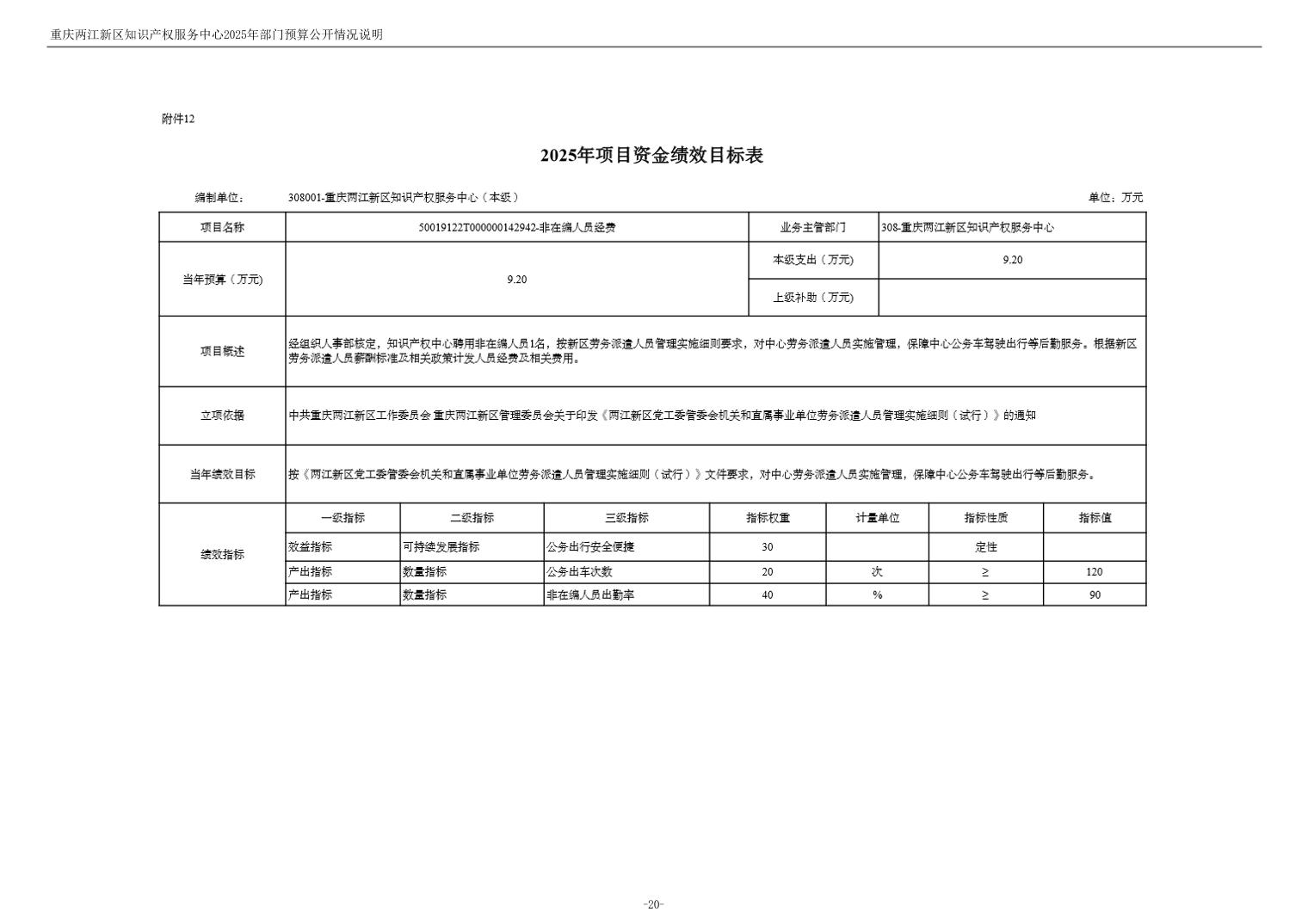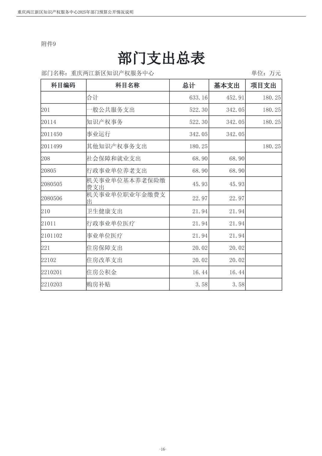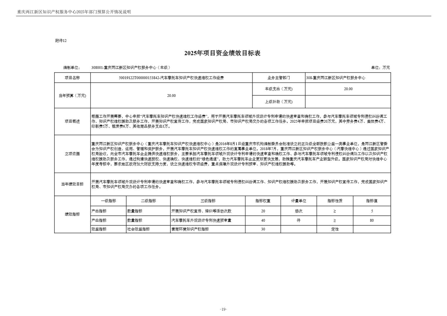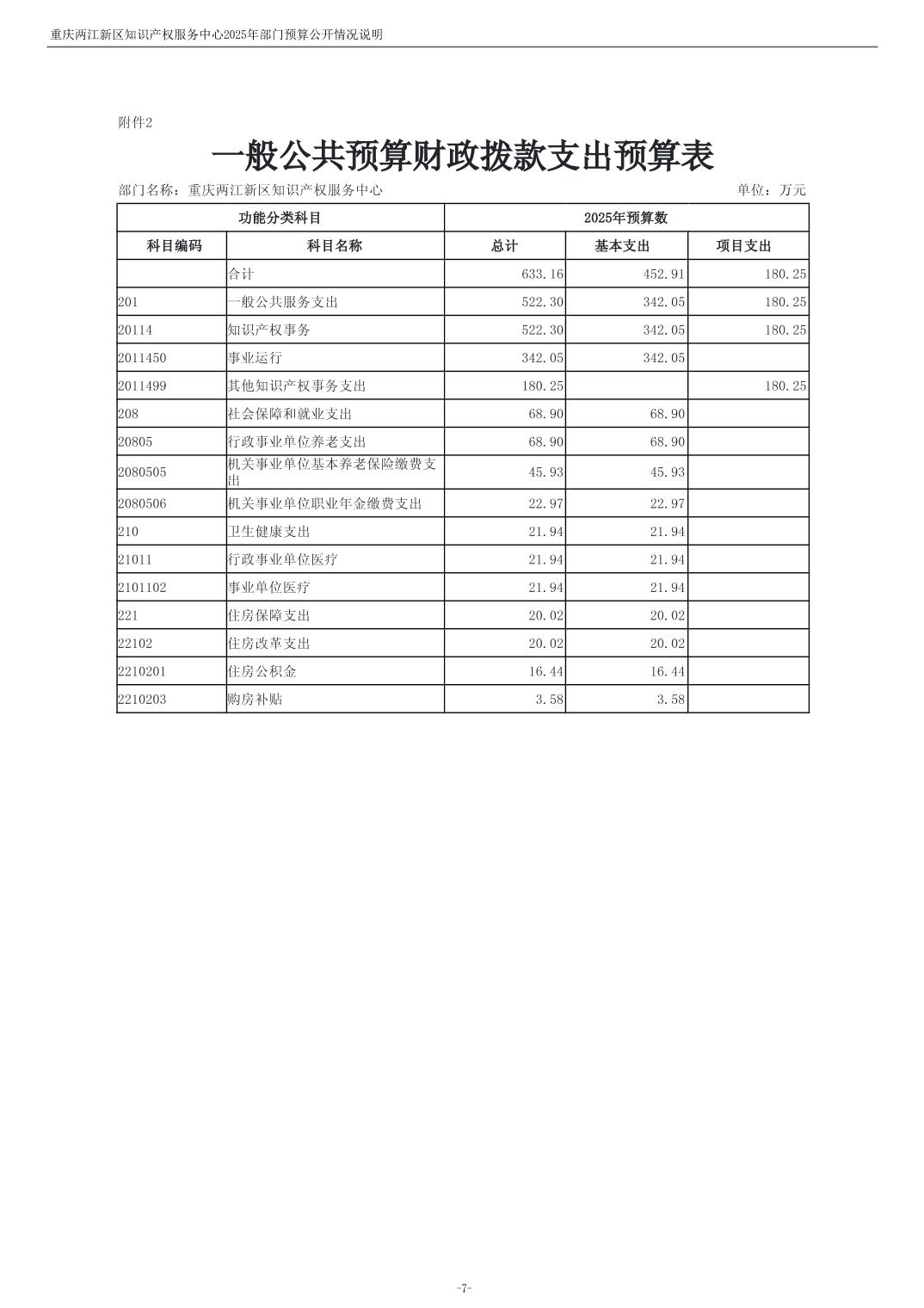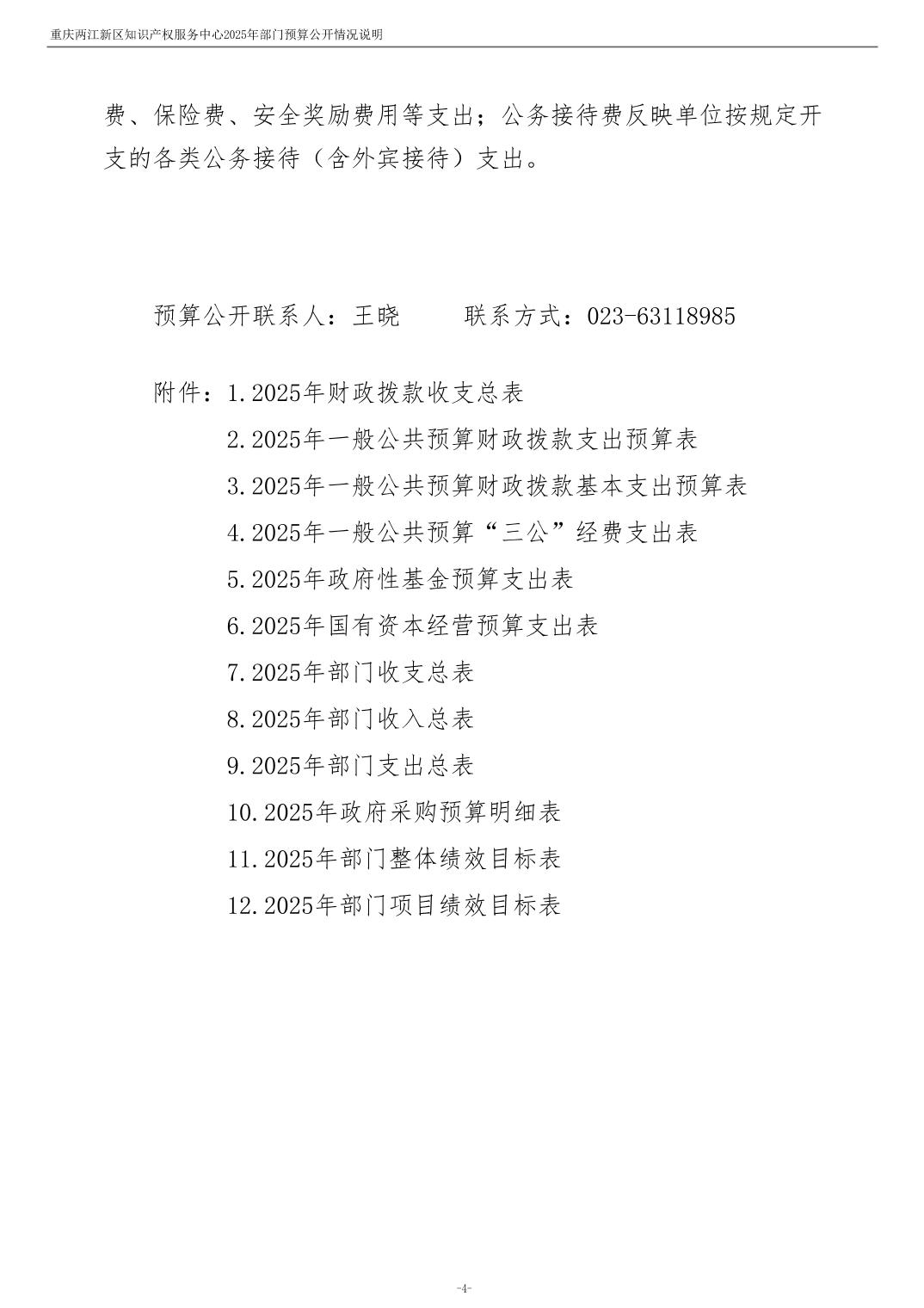 重庆两江新区知识产权服务中心2025年单位预算情况说明