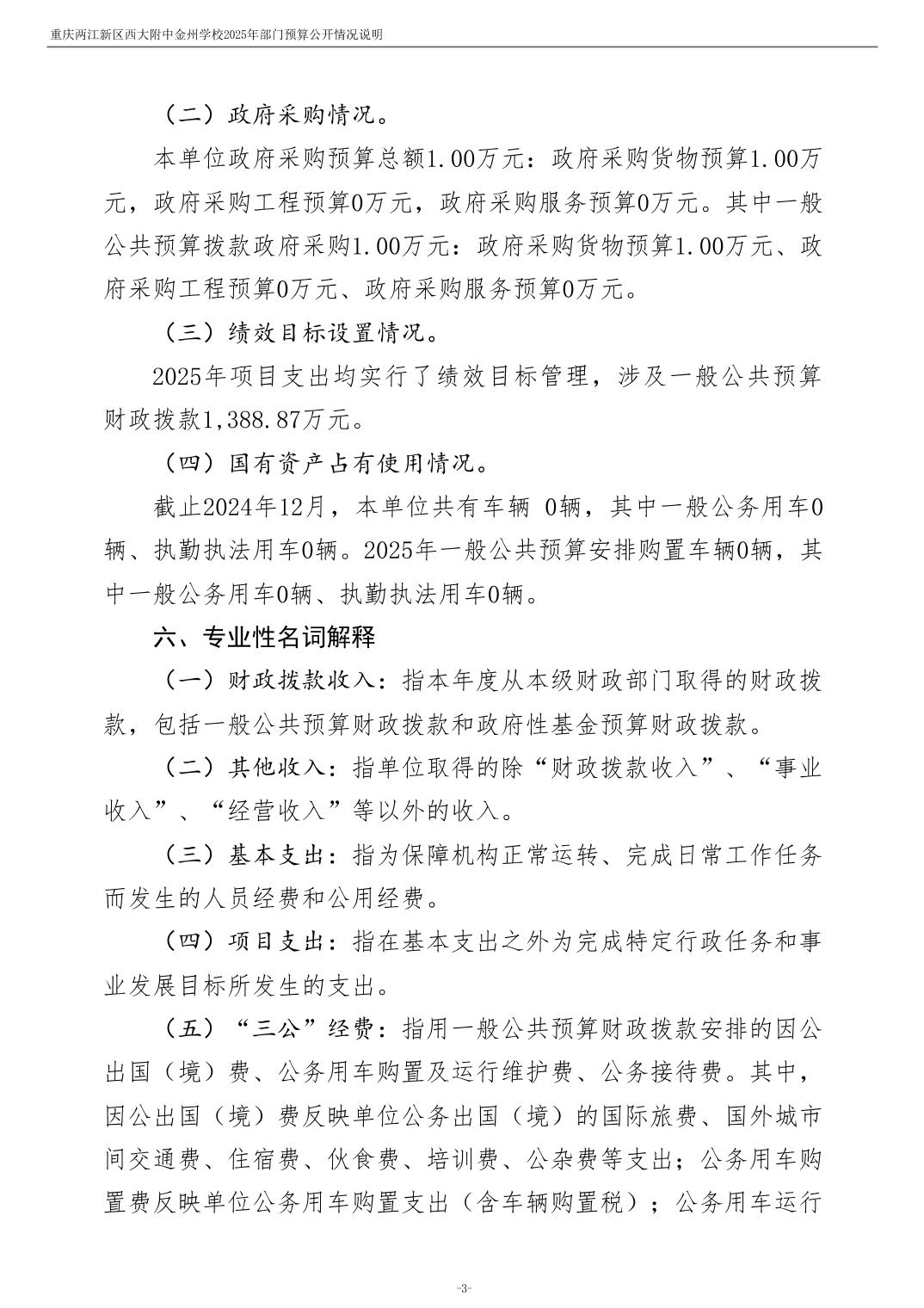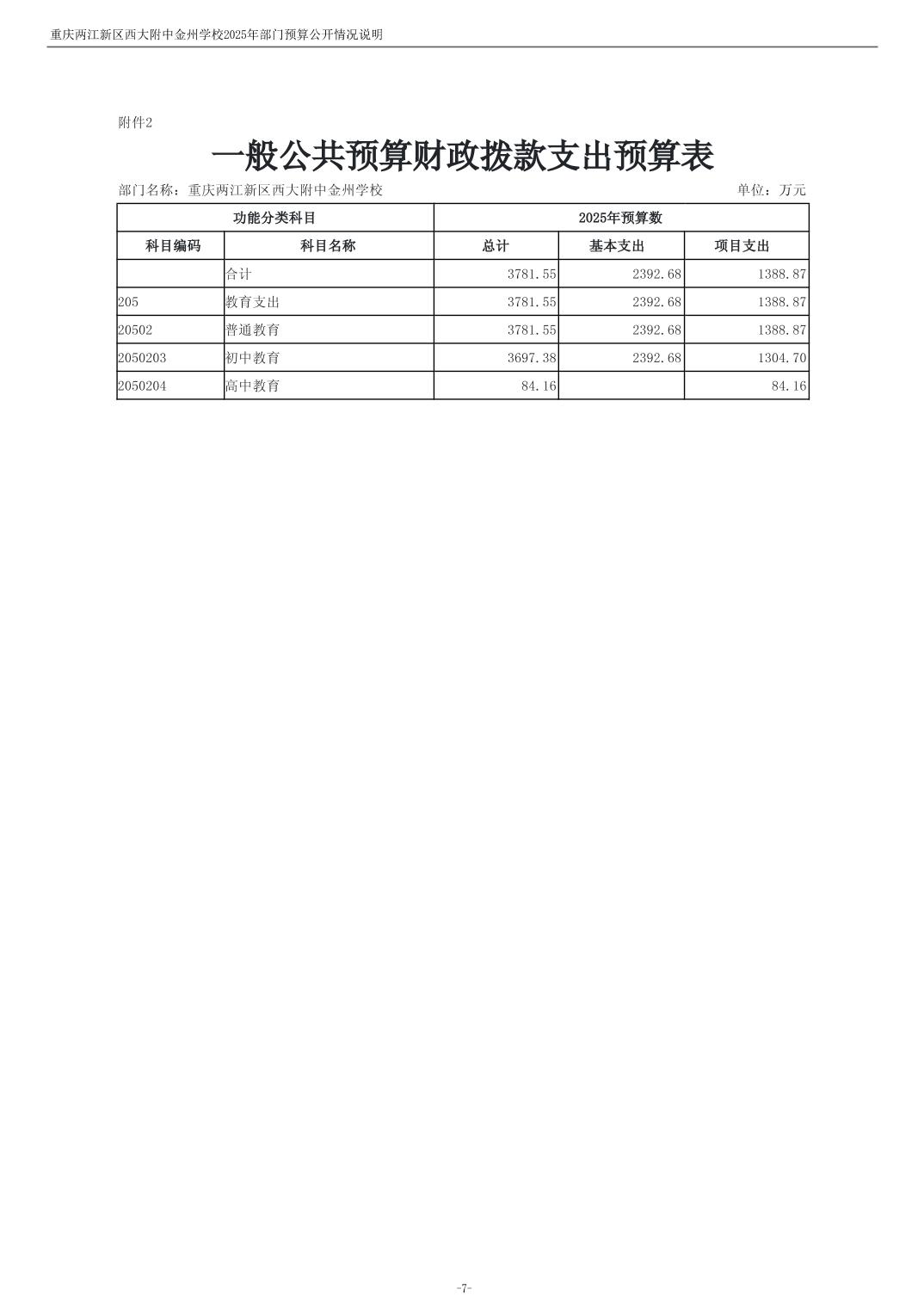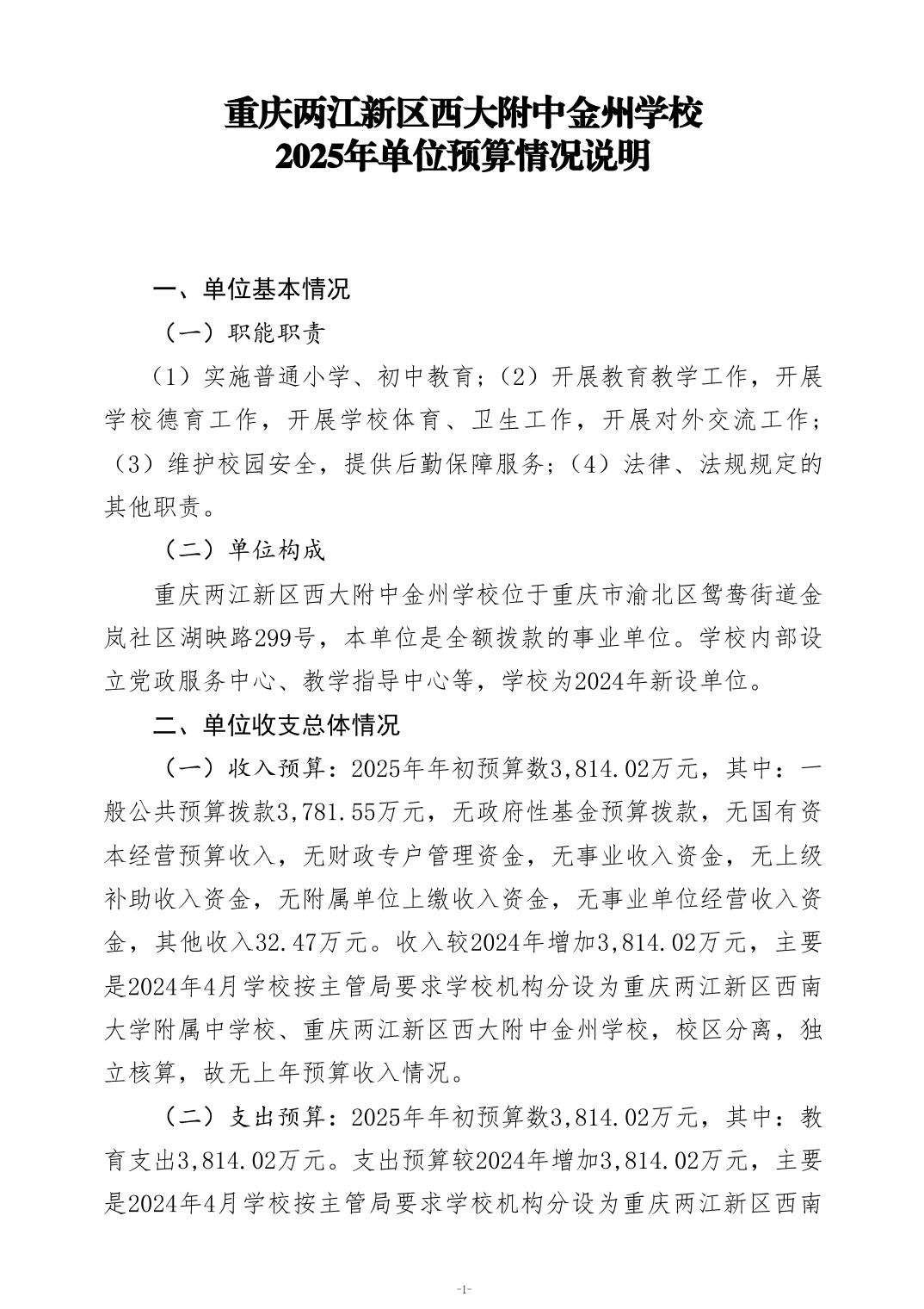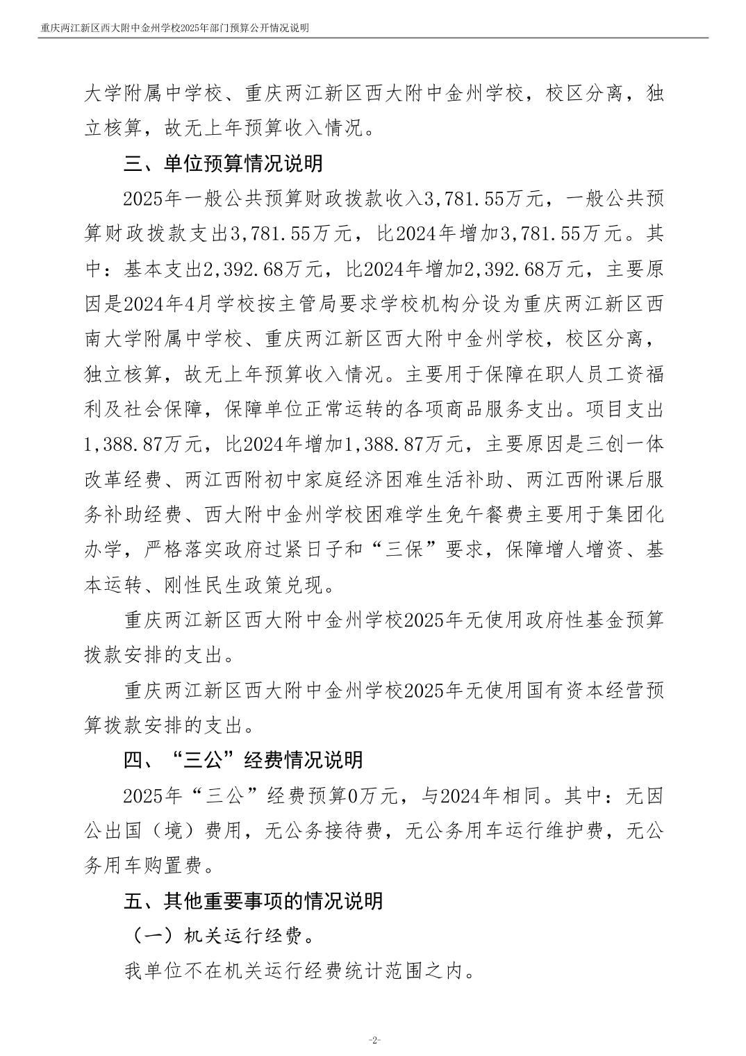 重庆两江新区西大附中金州学校2025年单位预算情况说明