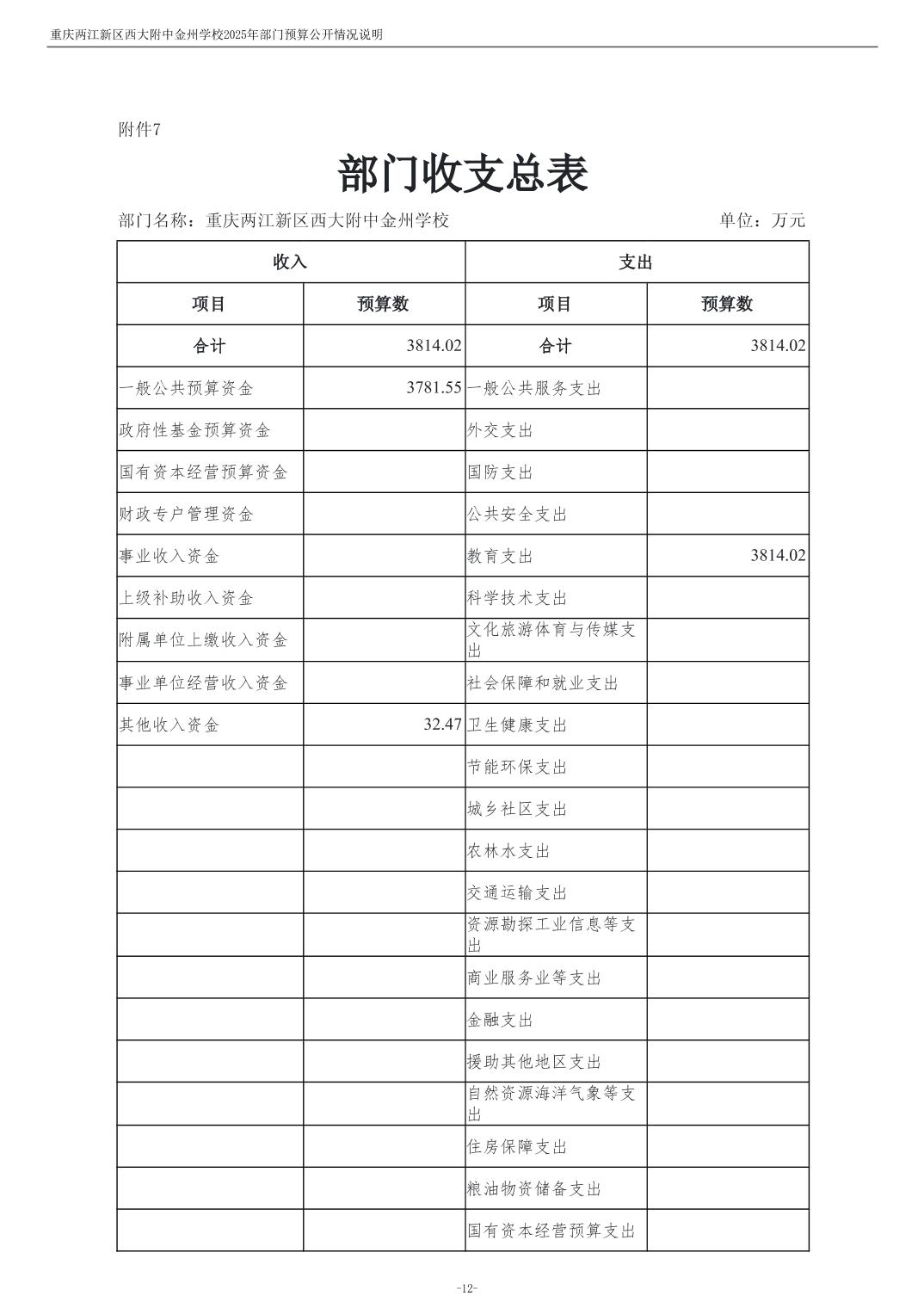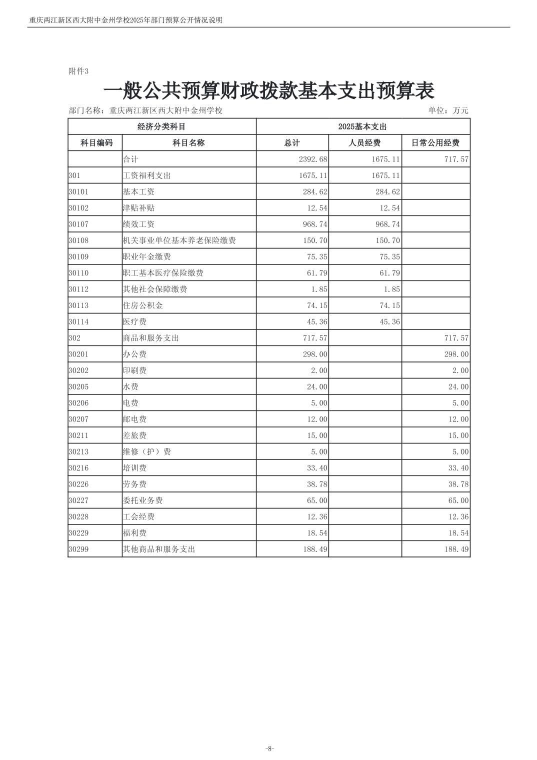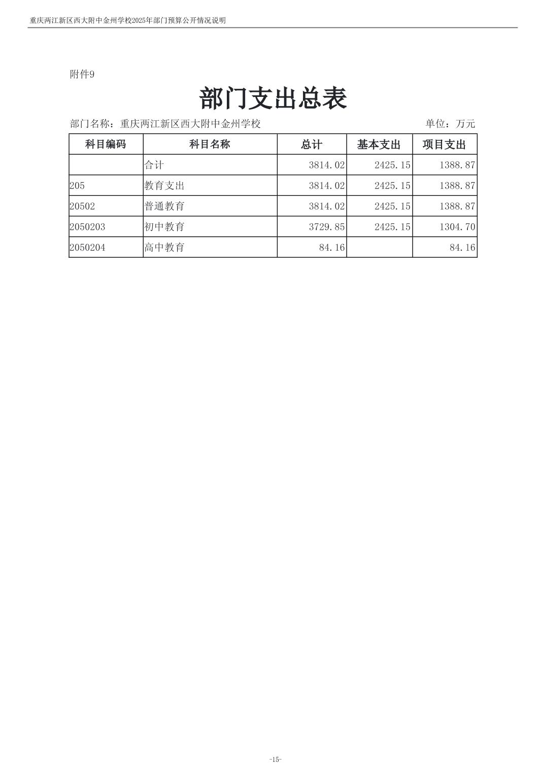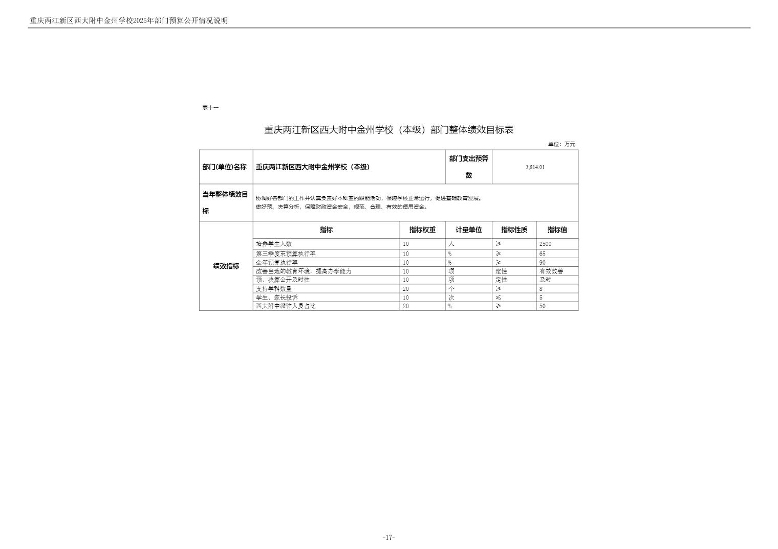 重庆两江新区西大附中金州学校2025年单位预算情况说明