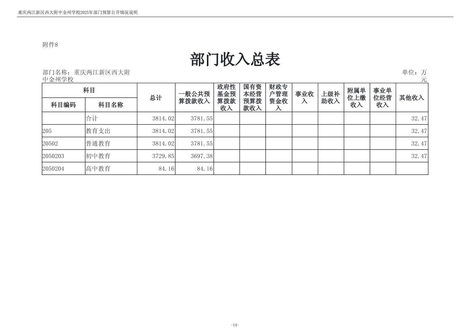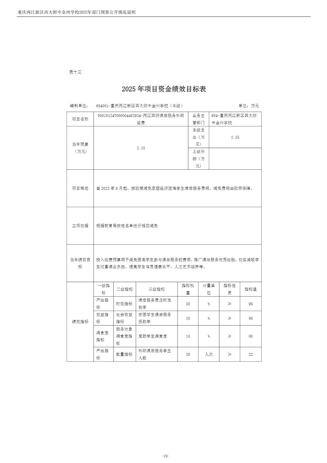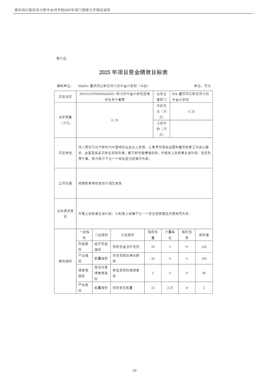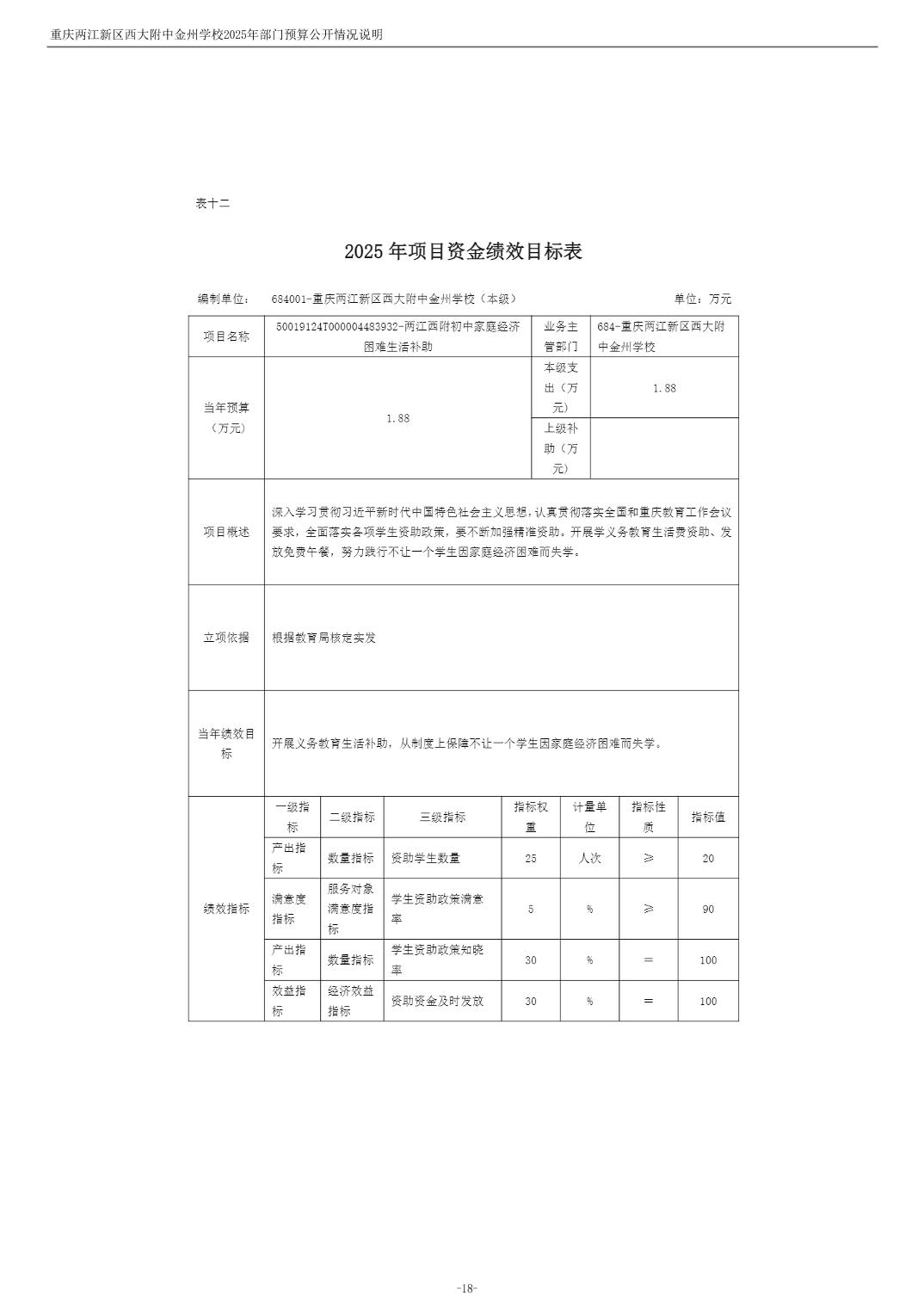 重庆两江新区西大附中金州学校2025年单位预算情况说明