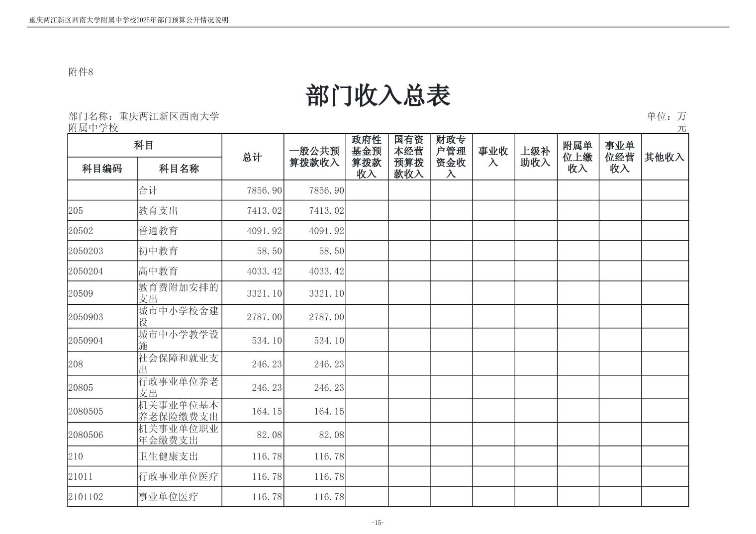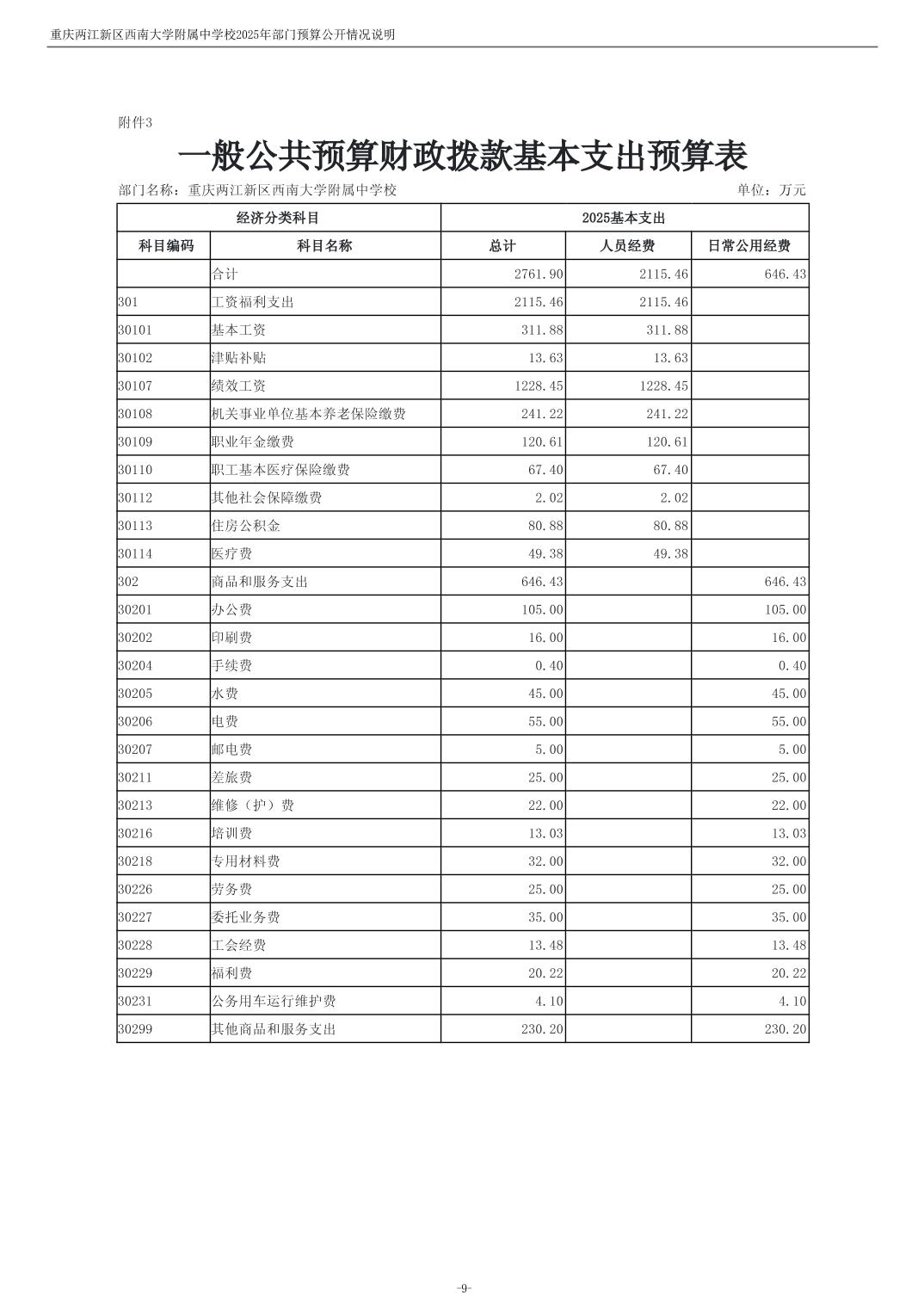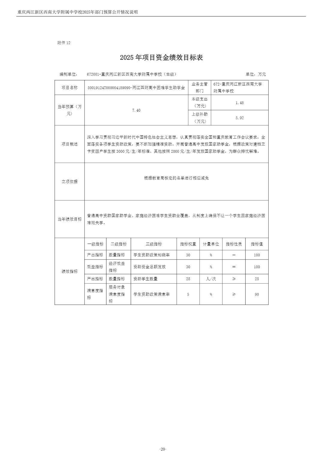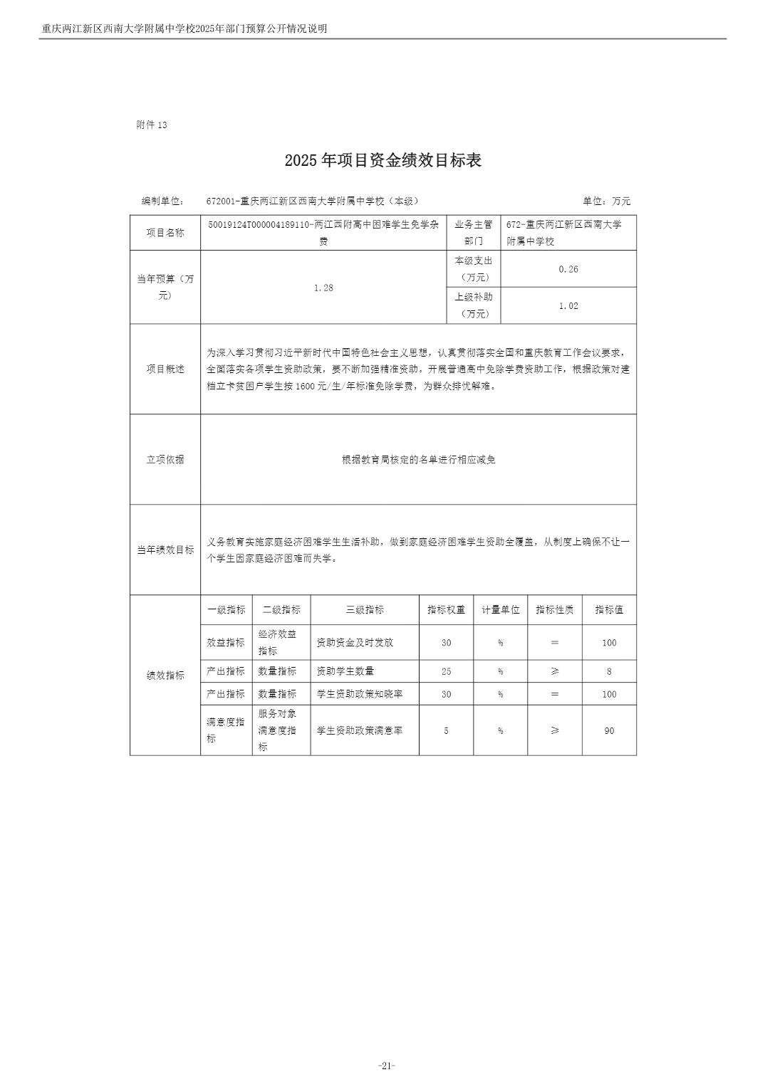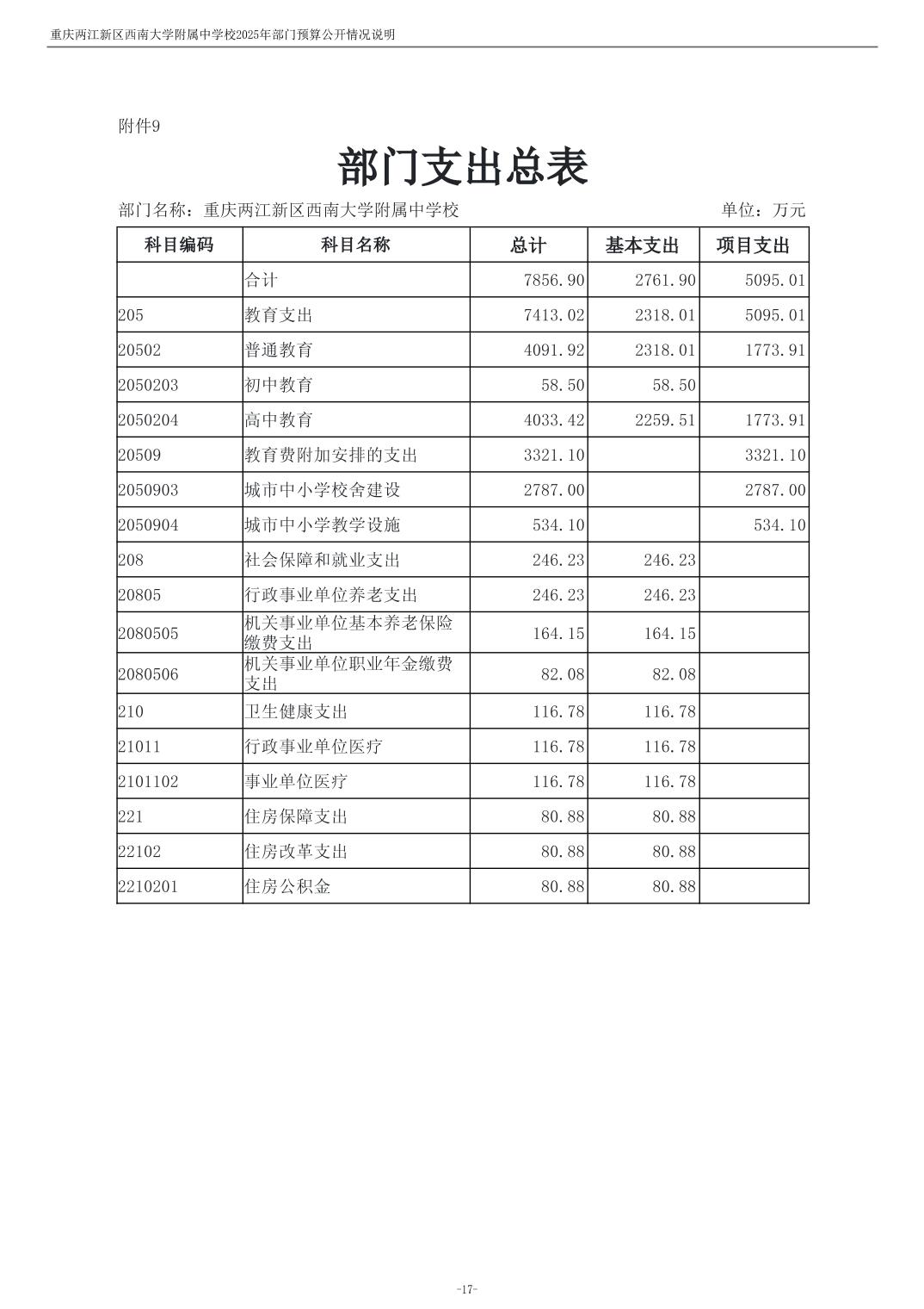 重庆两江新区西南大学附属中学校2025年单位预算情况说明