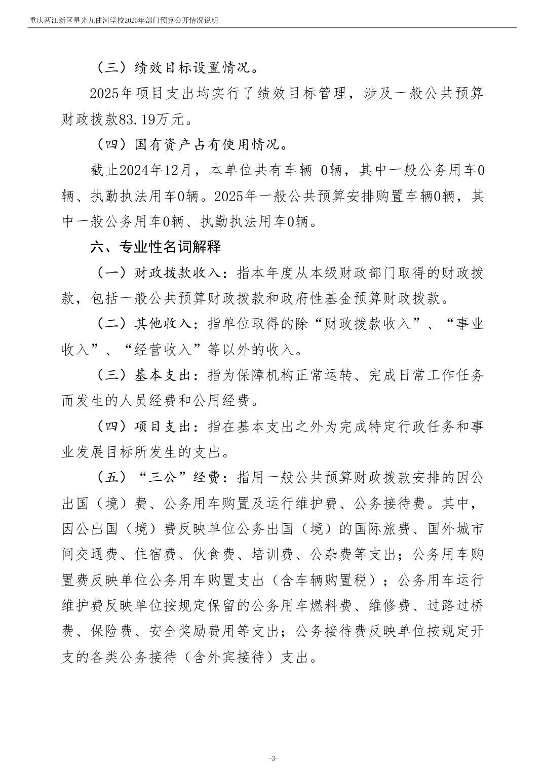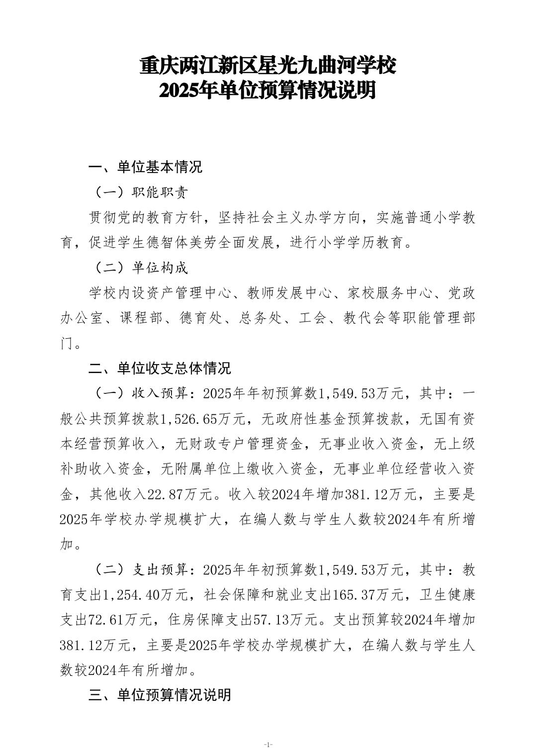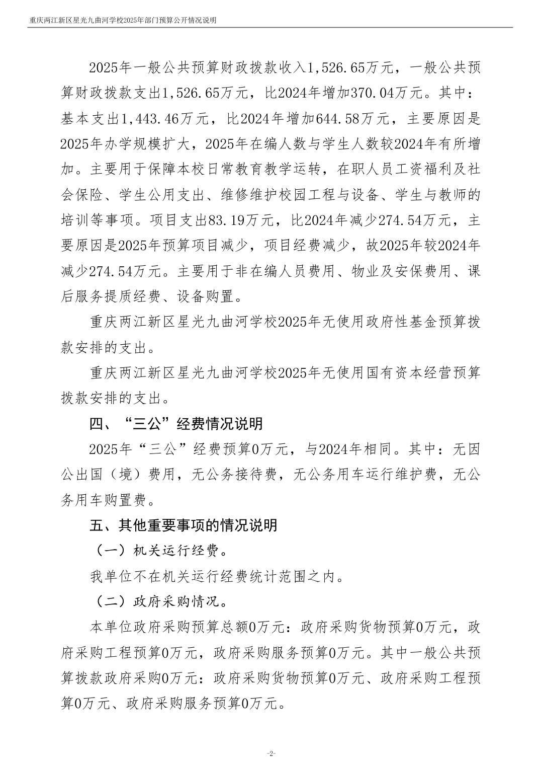 重庆两江新区星光九曲河学校2025年单位预算情况说明