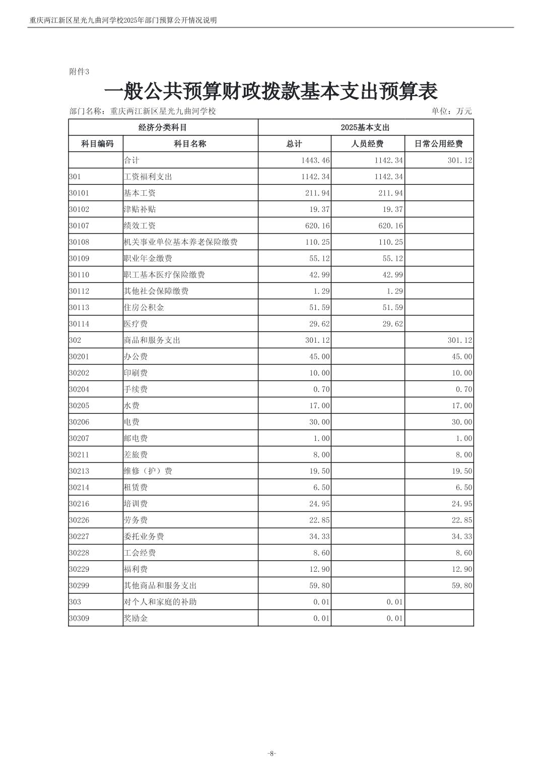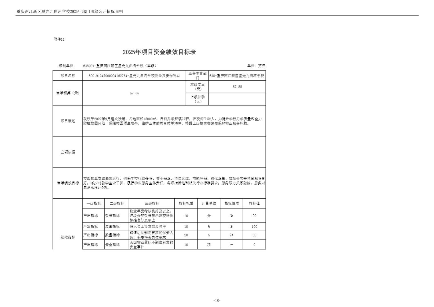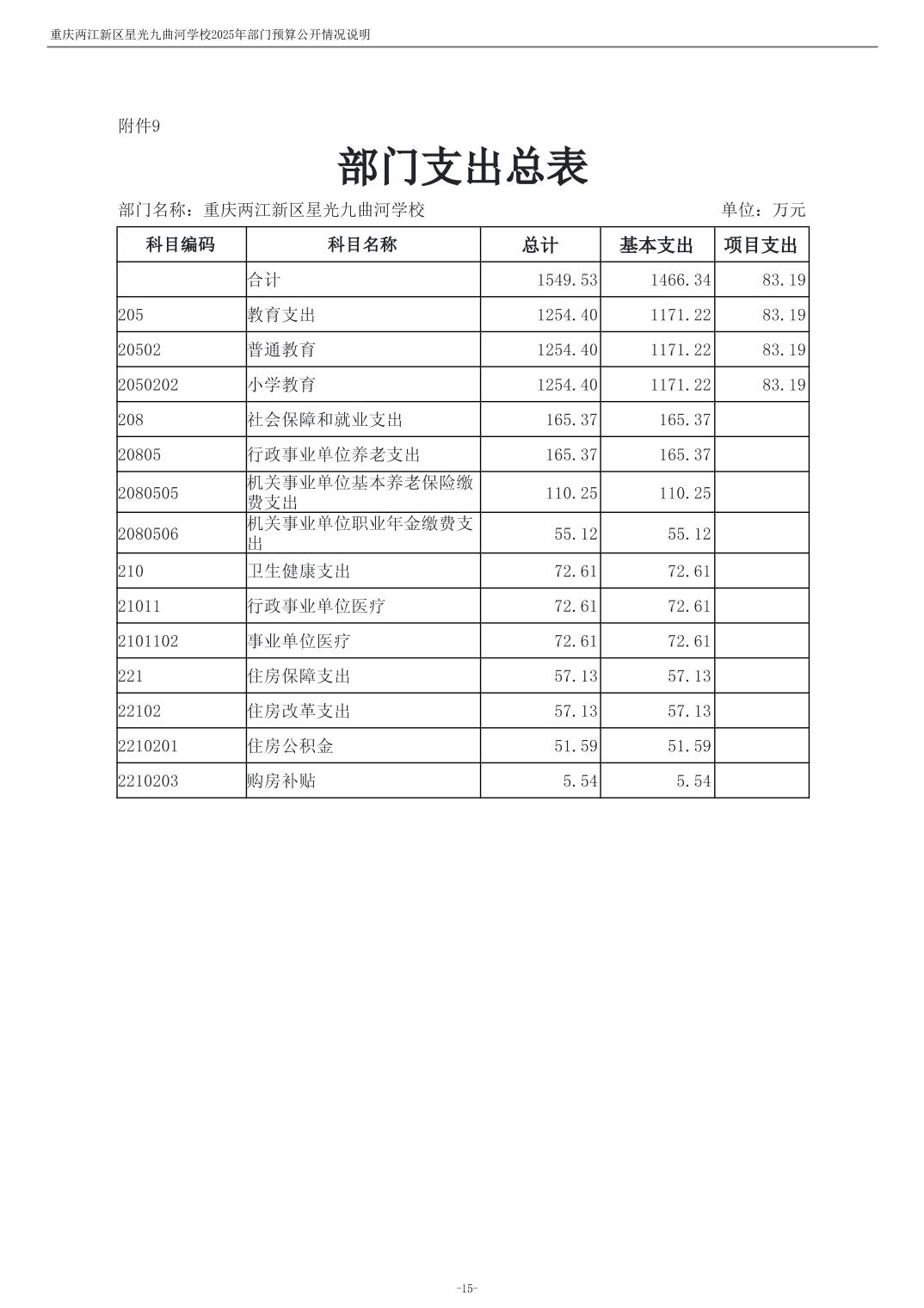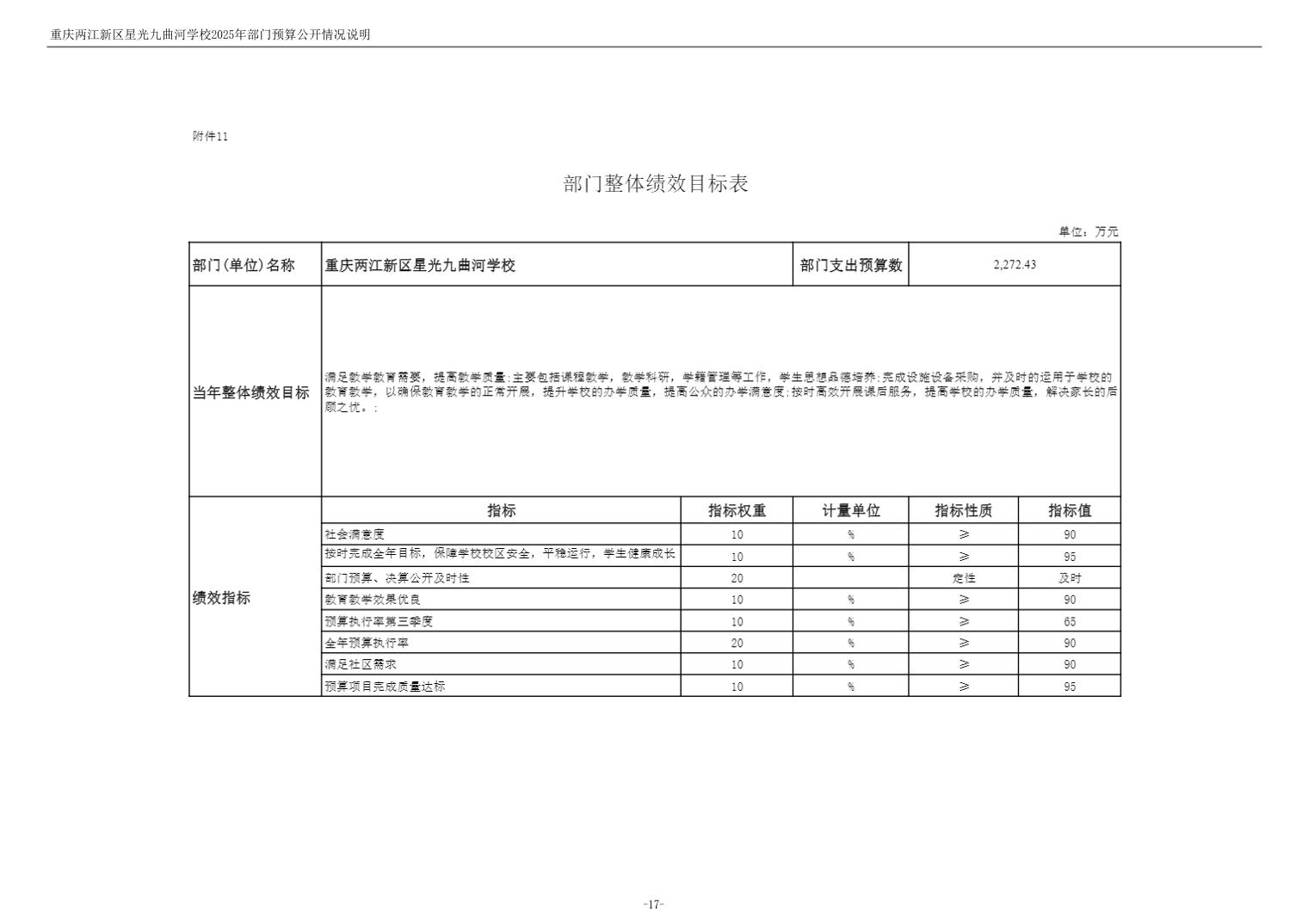 重庆两江新区星光九曲河学校2025年单位预算情况说明