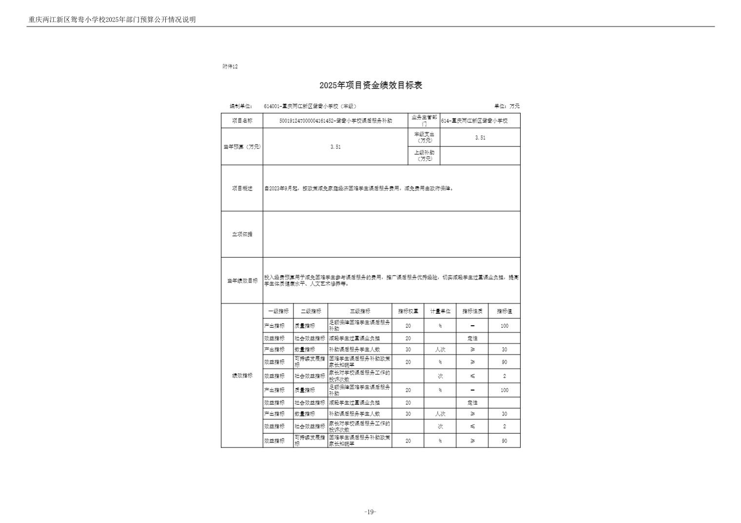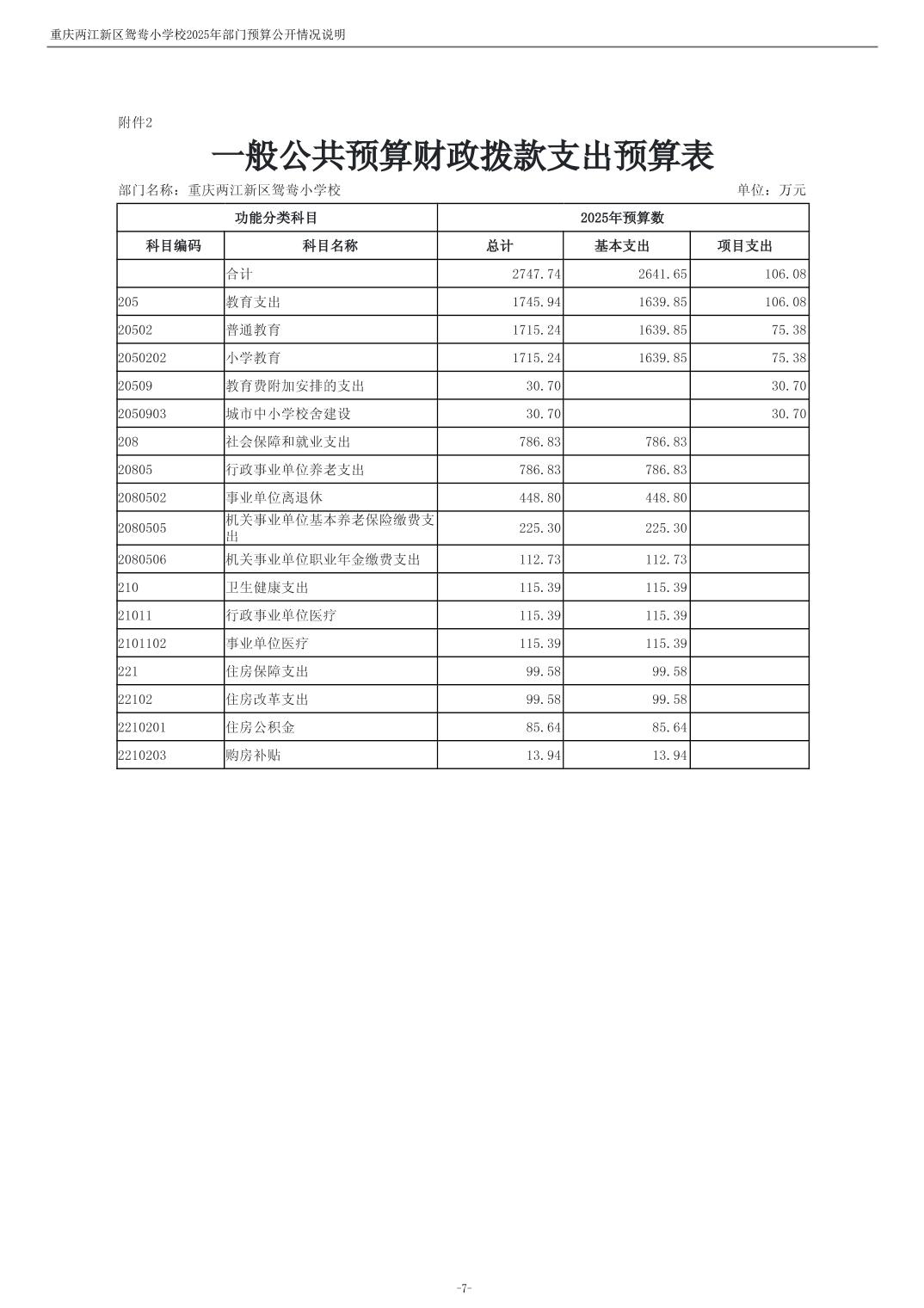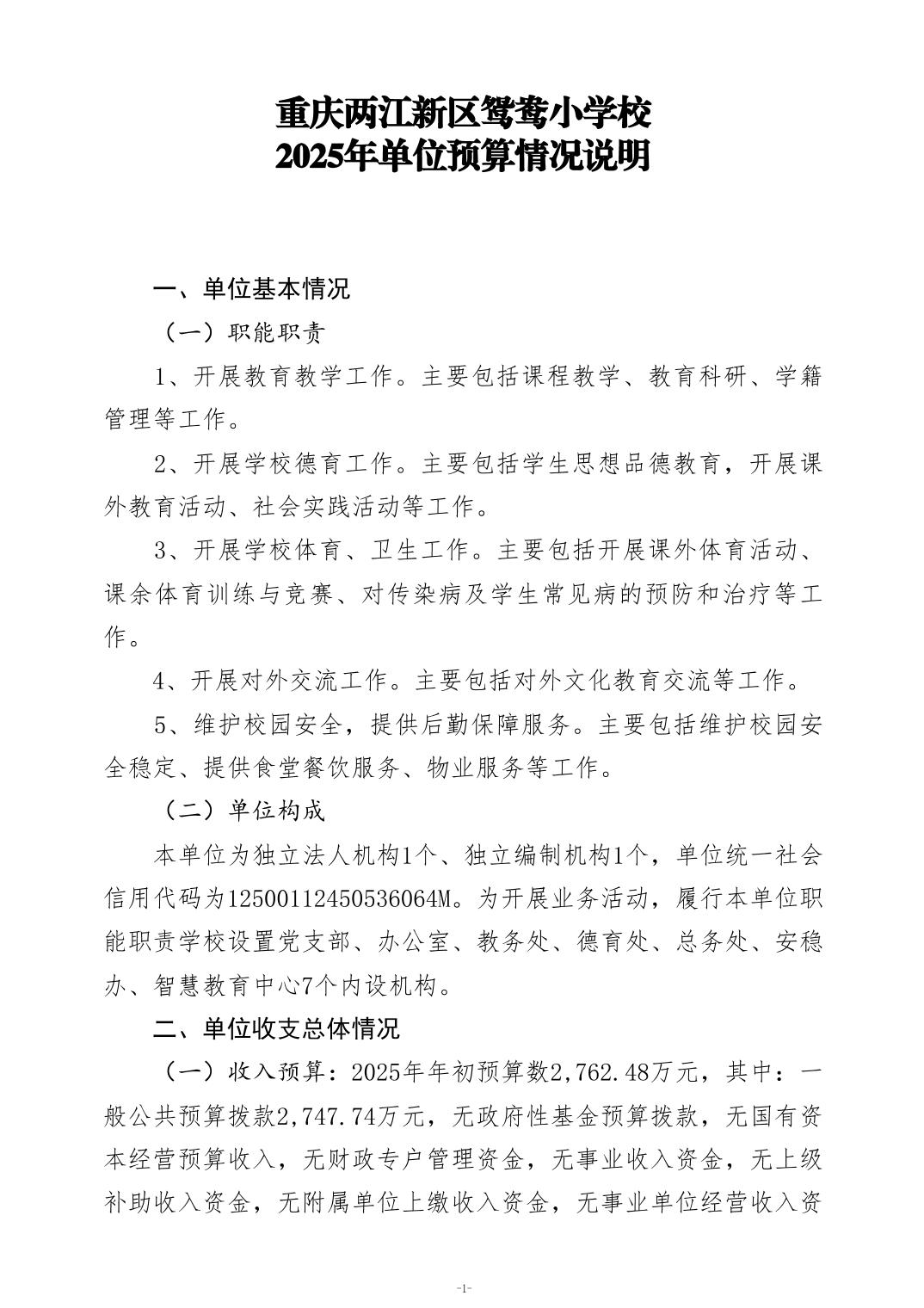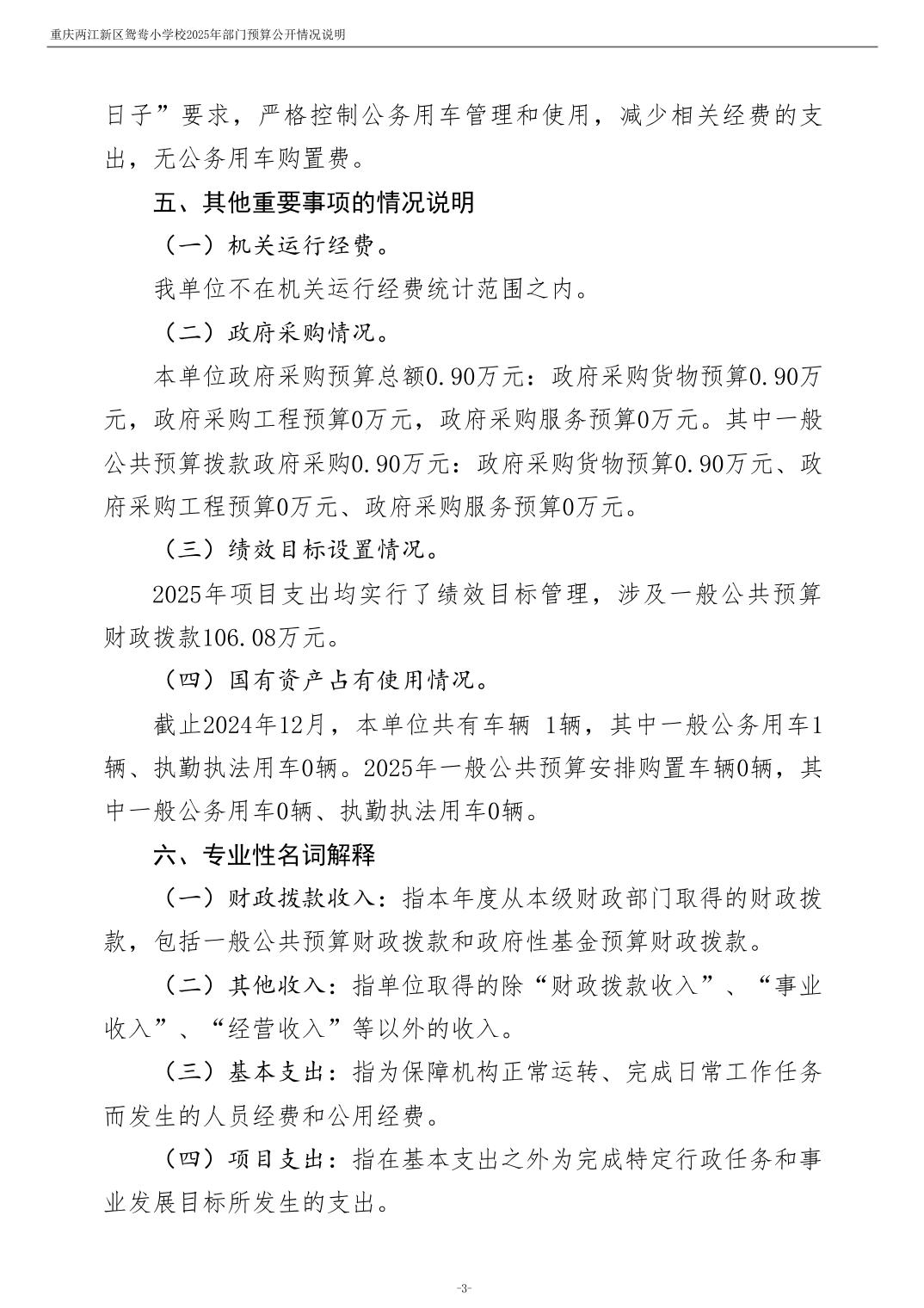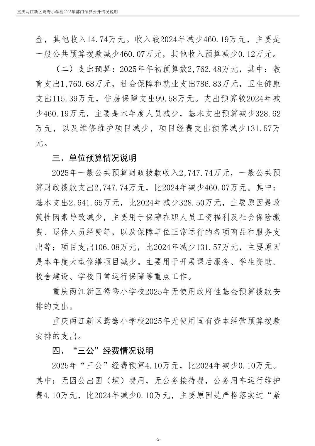 重庆两江新区鸳鸯小学校2025年单位预算情况说明