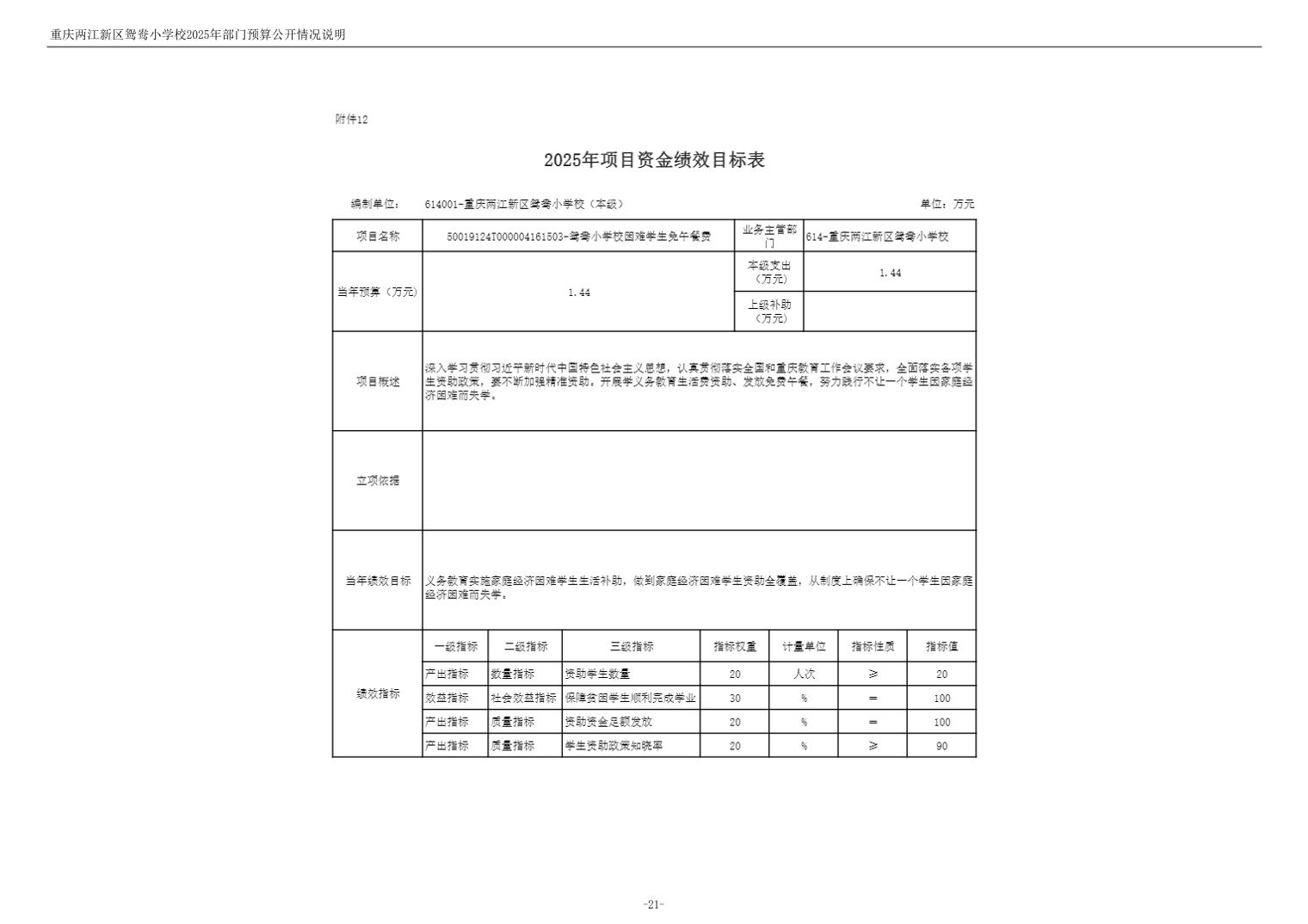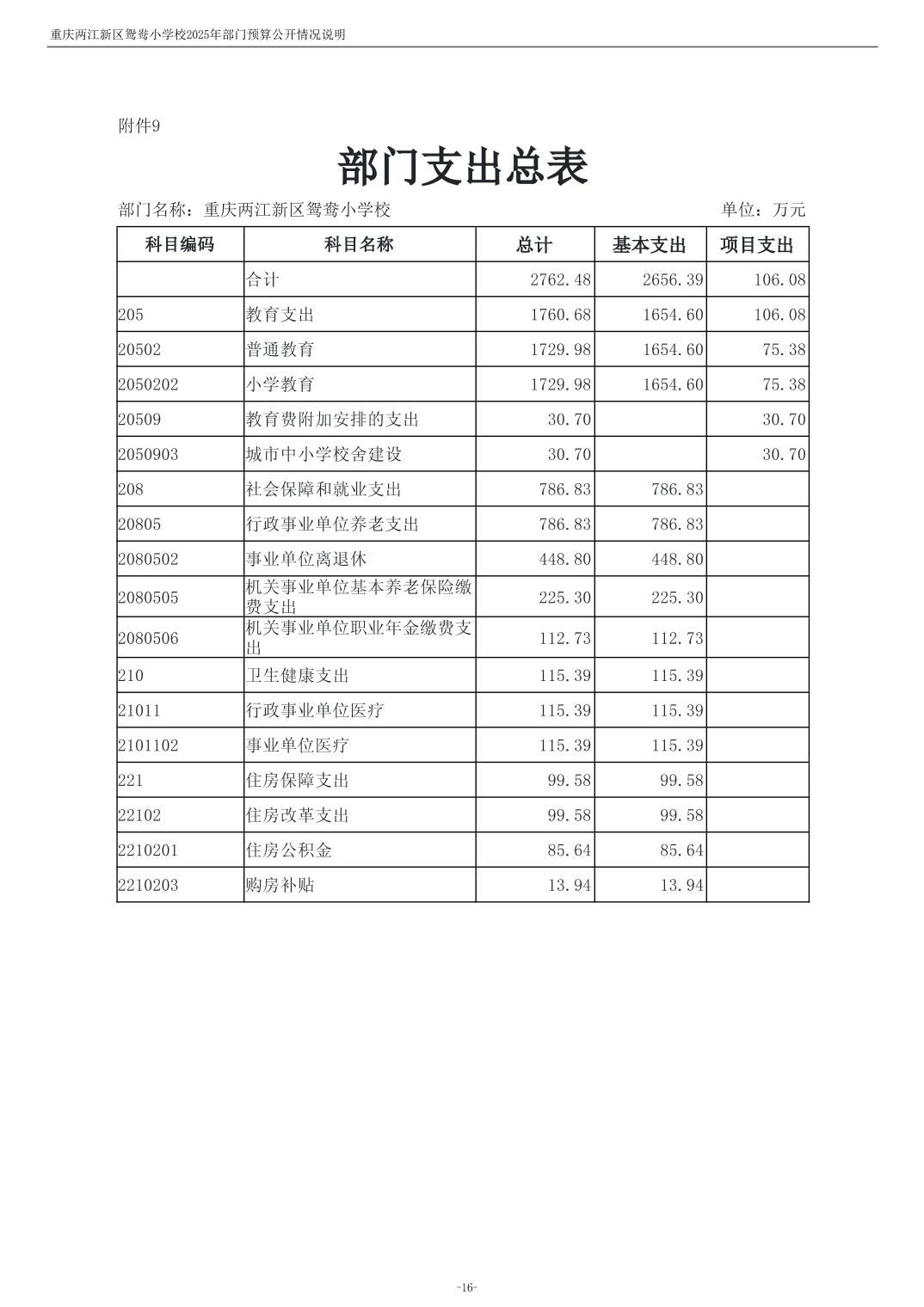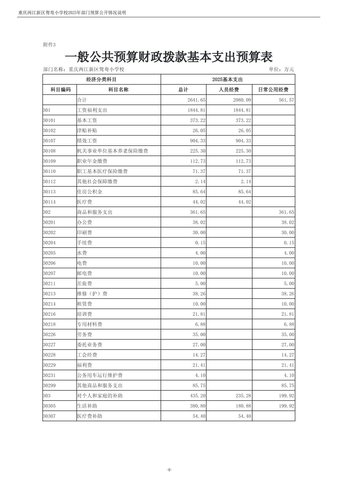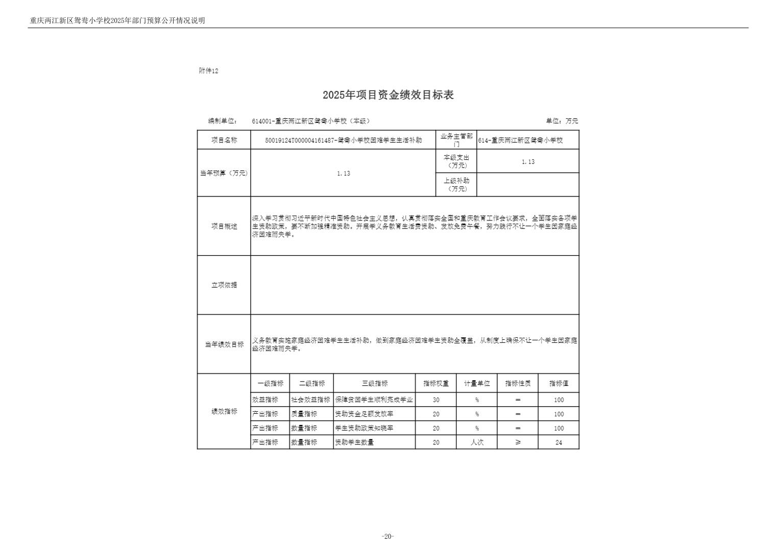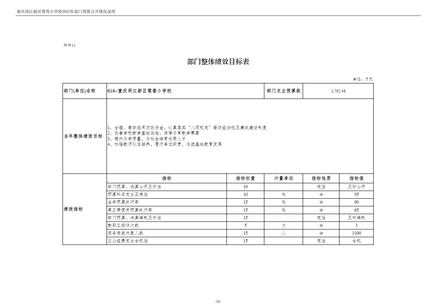 重庆两江新区鸳鸯小学校2025年单位预算情况说明