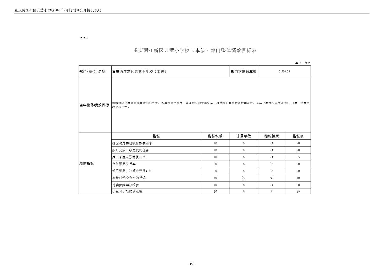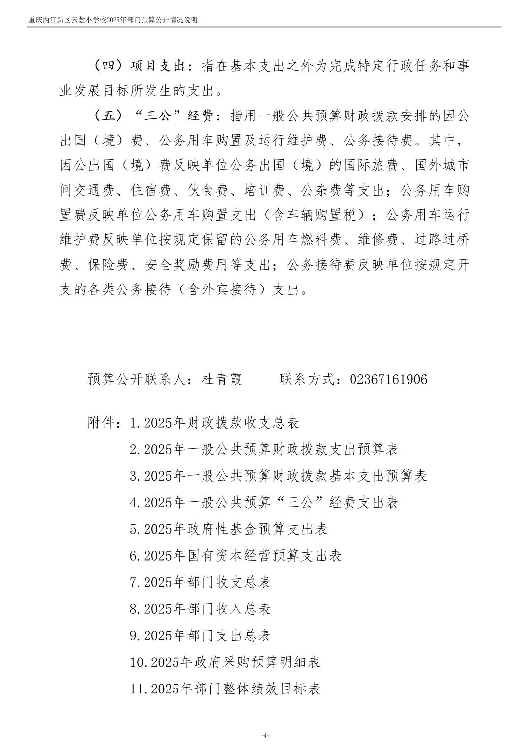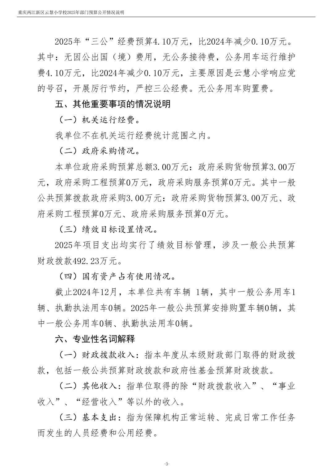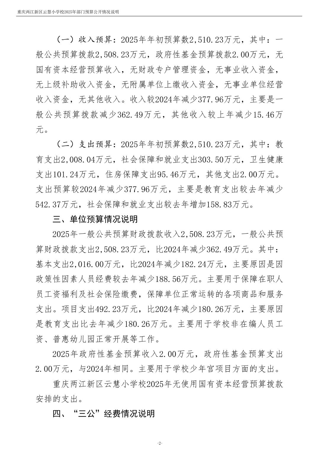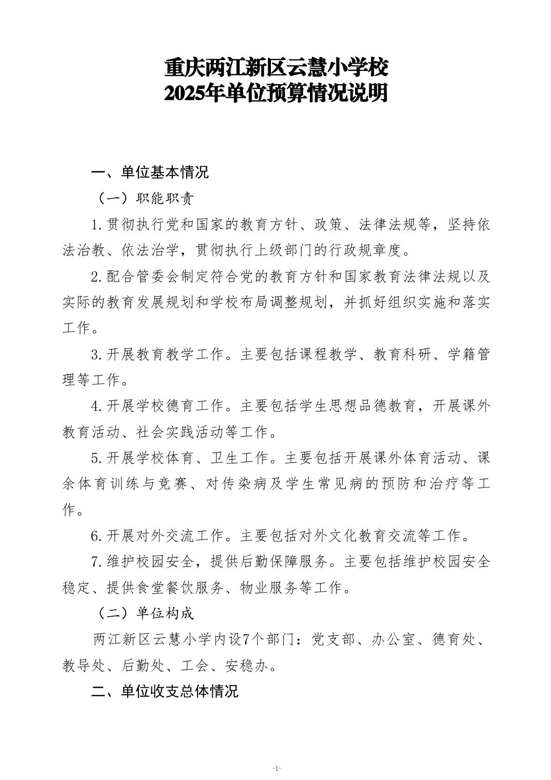 重庆两江新区云慧小学校2025年单位预算情况说明