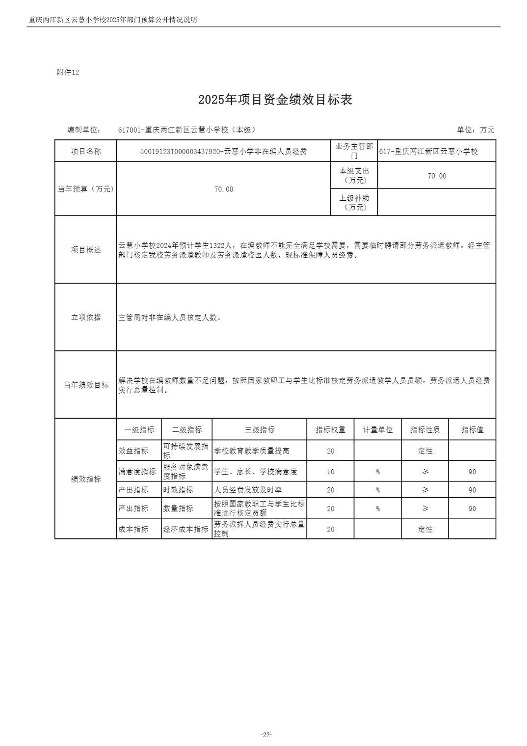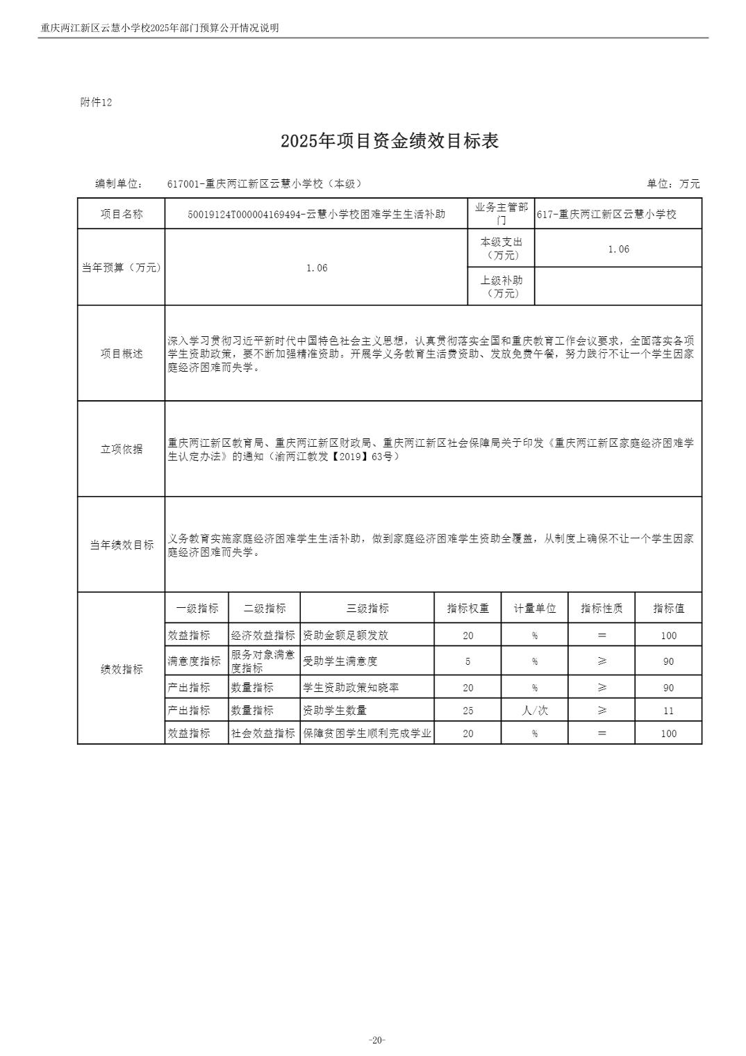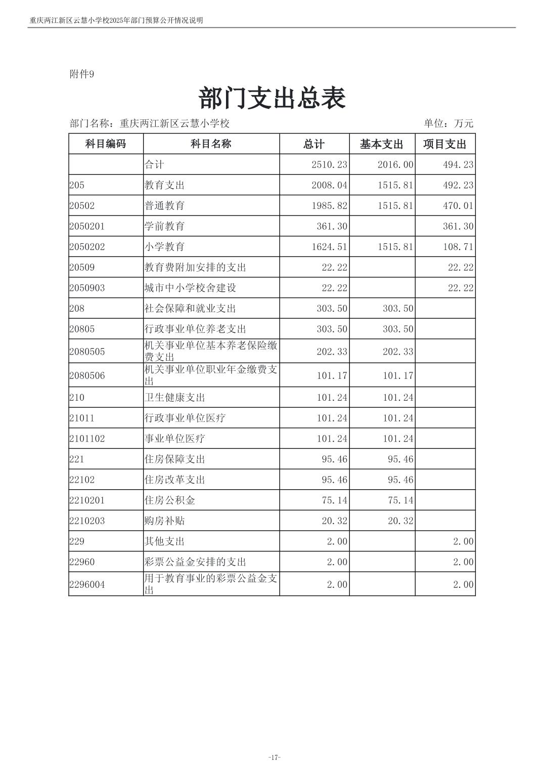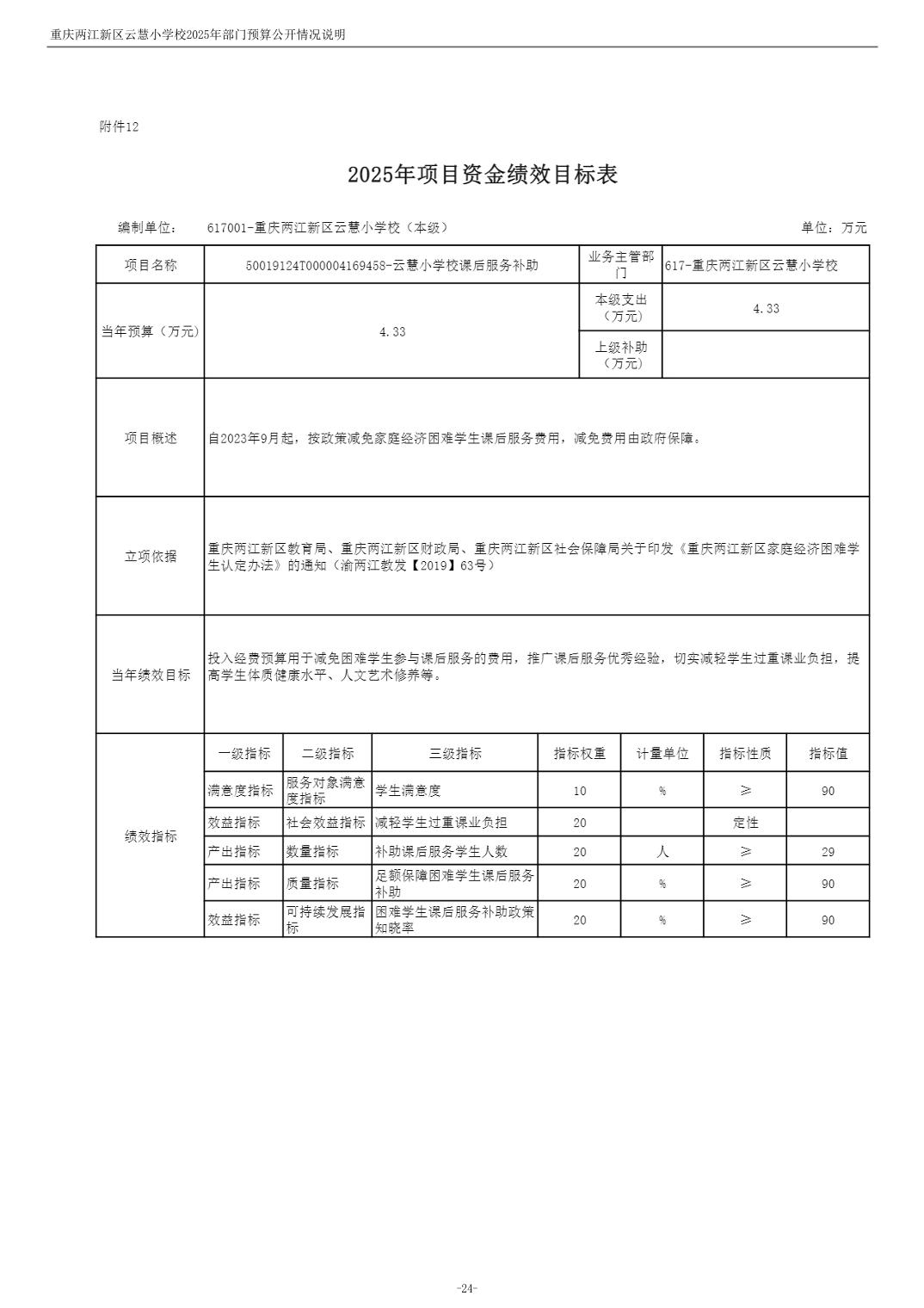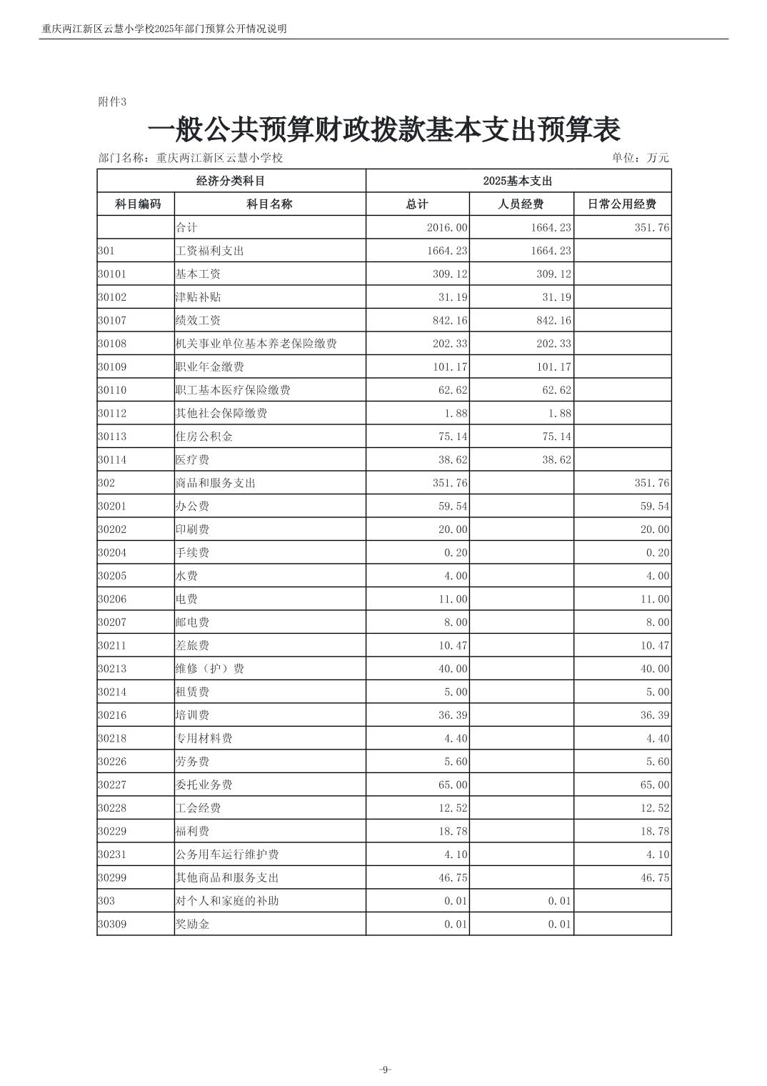 重庆两江新区云慧小学校2025年单位预算情况说明