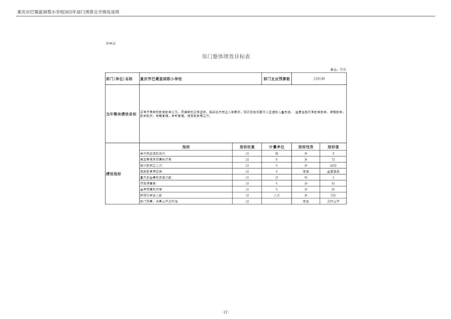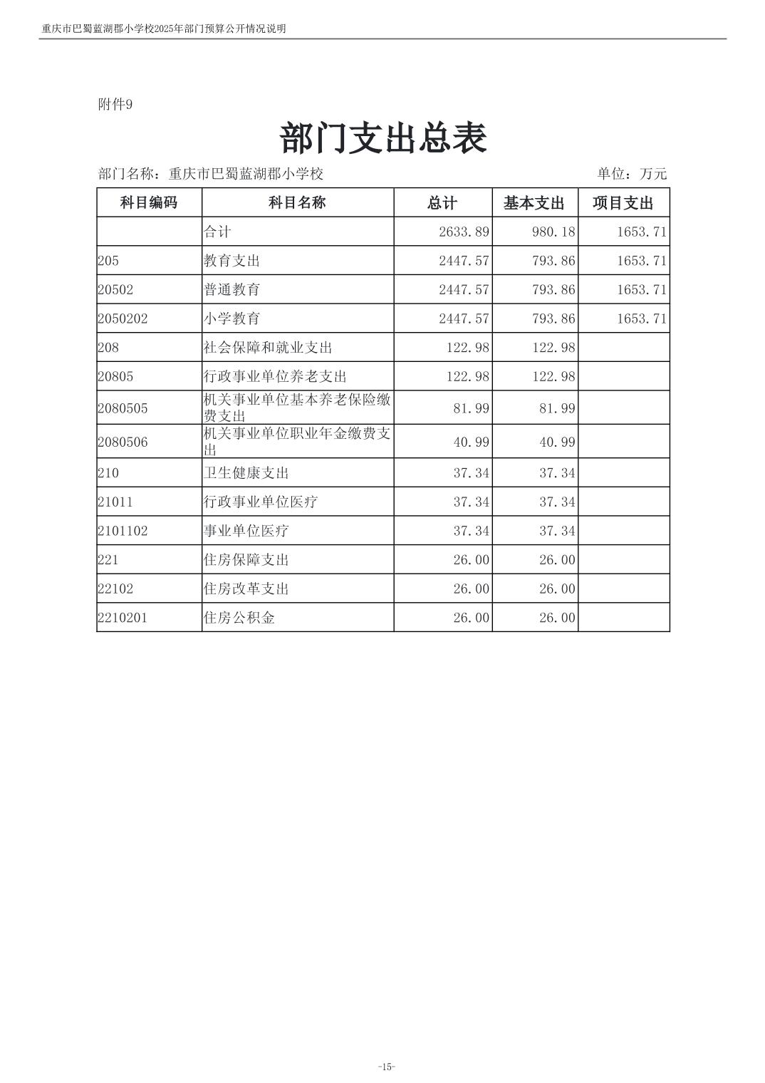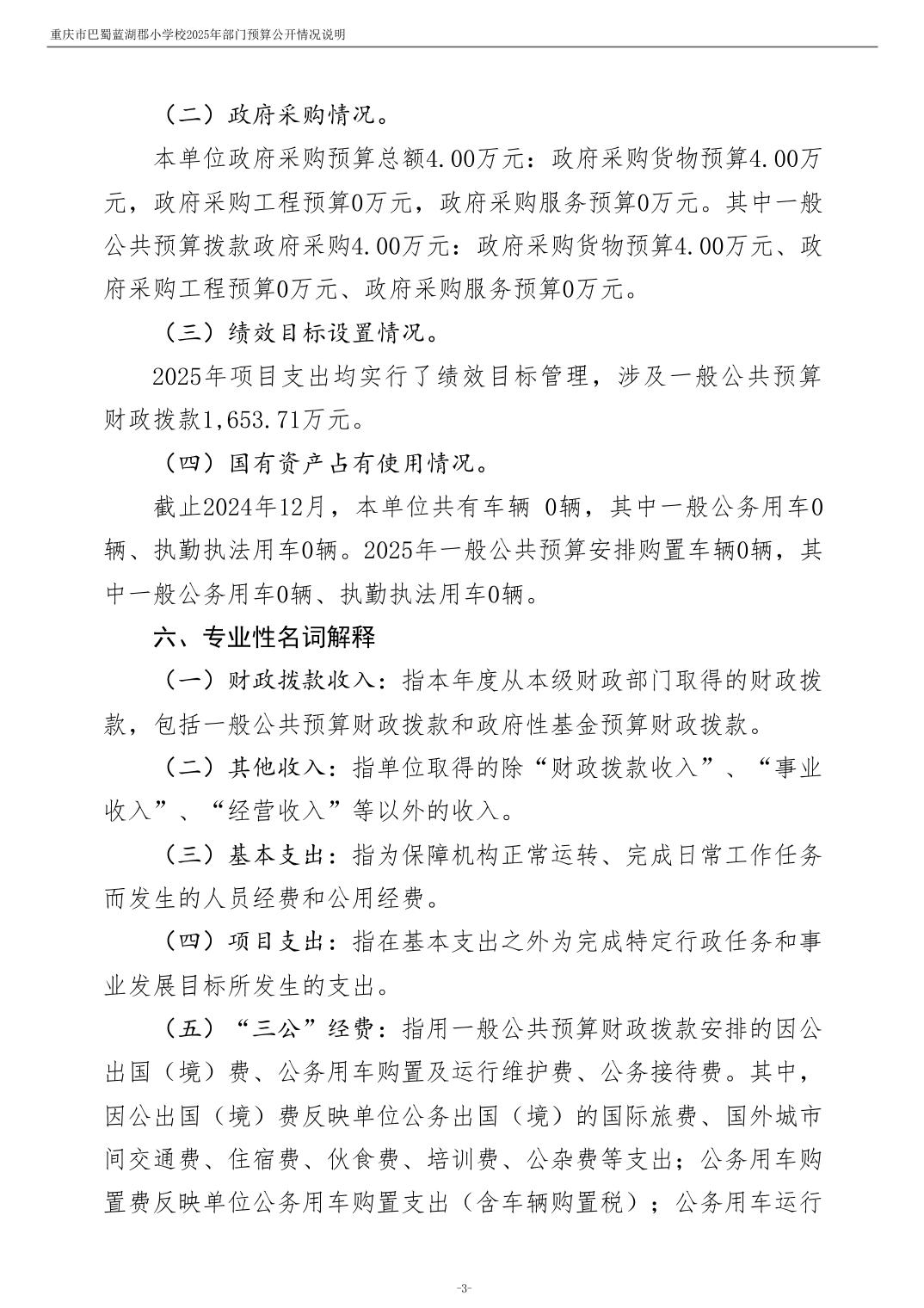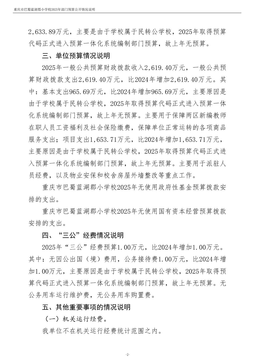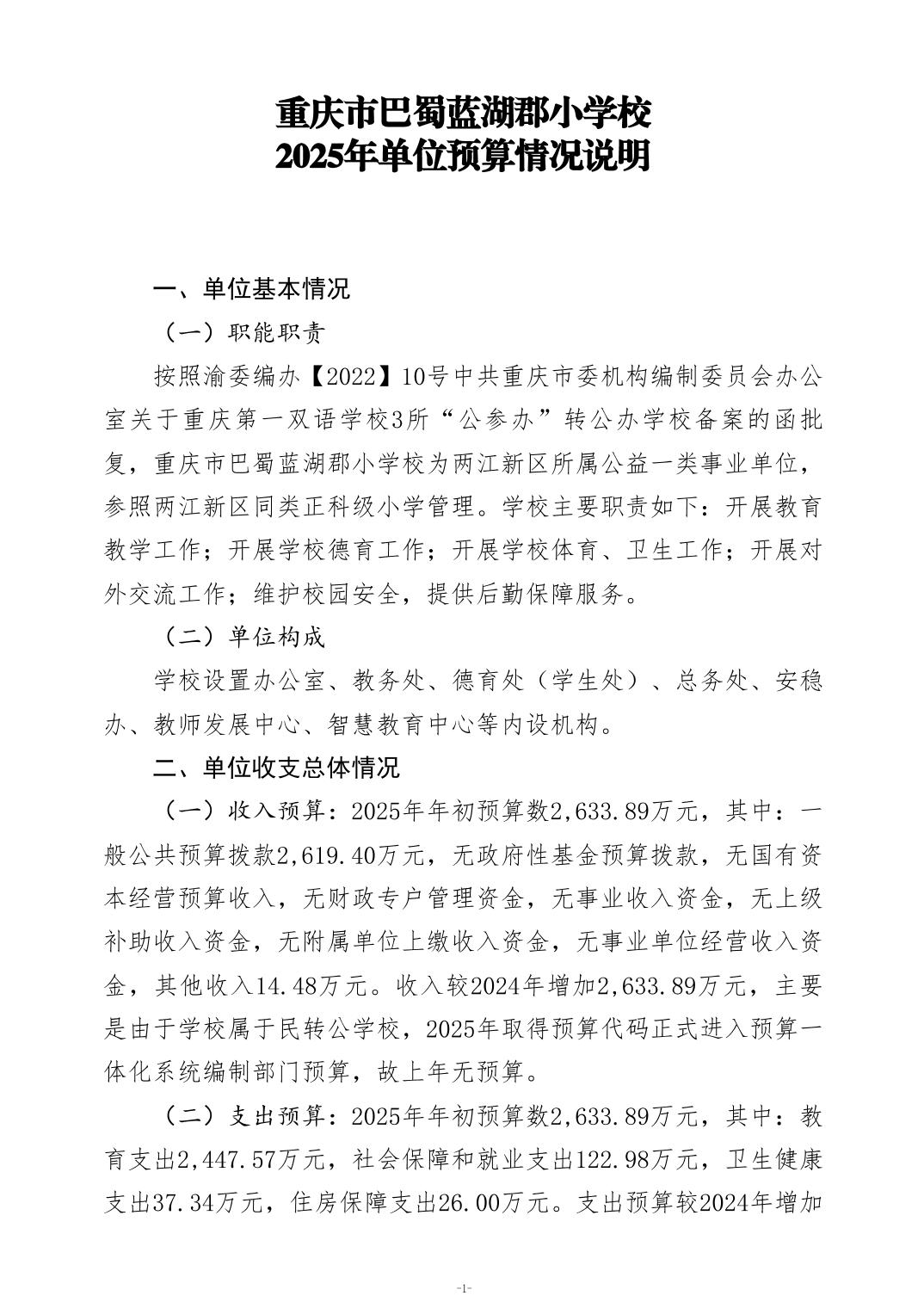重庆市巴蜀蓝湖郡小学校2025年单位预算情况说明