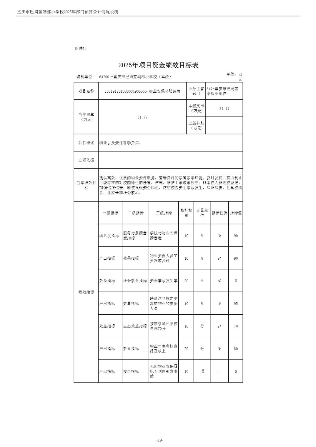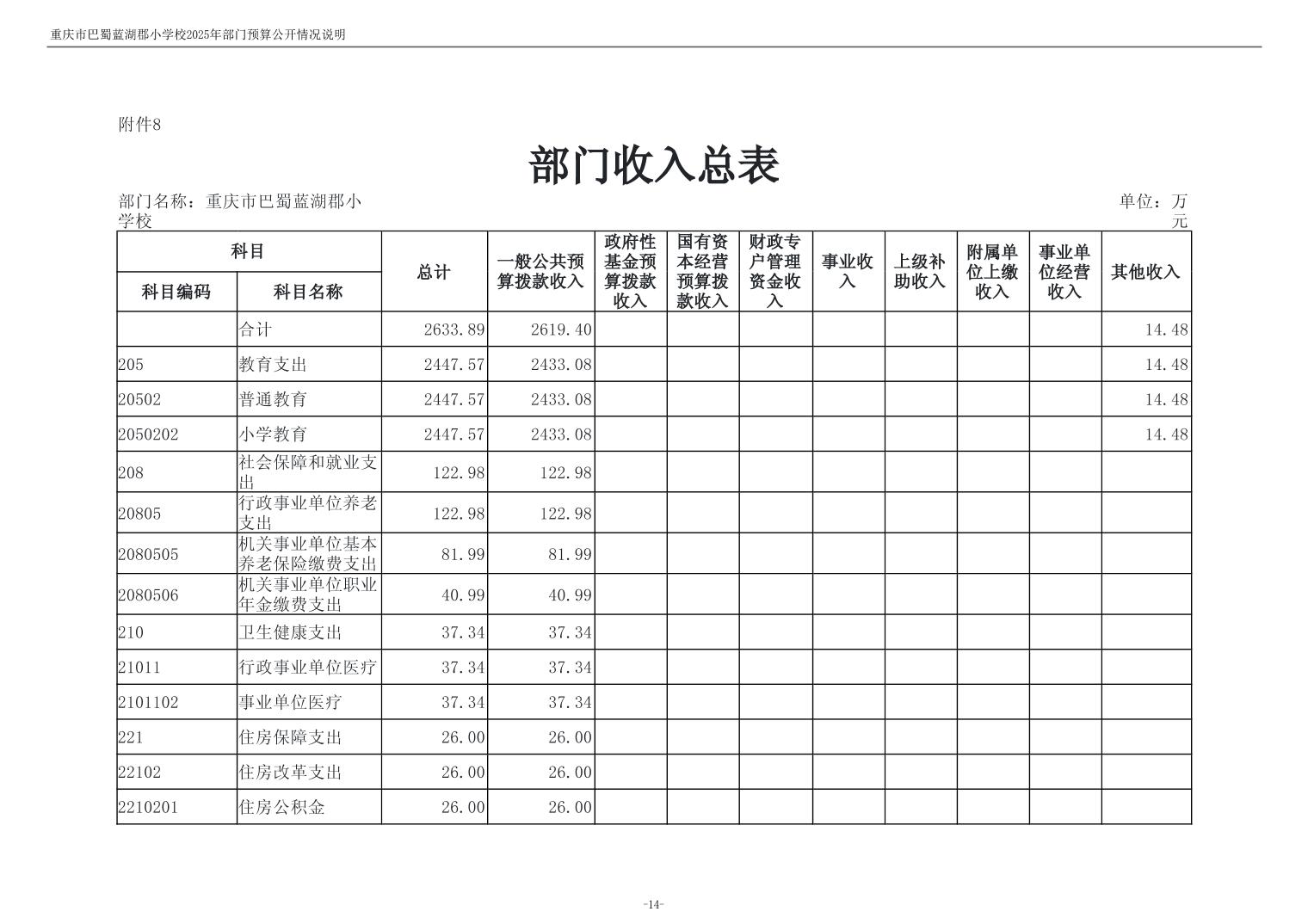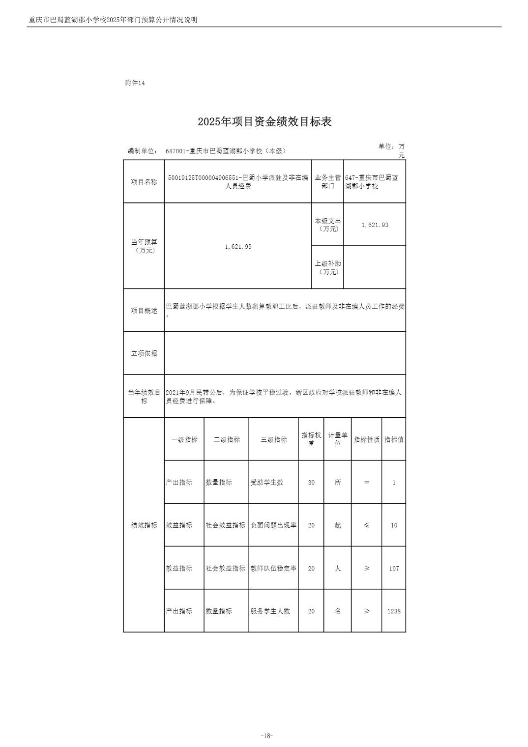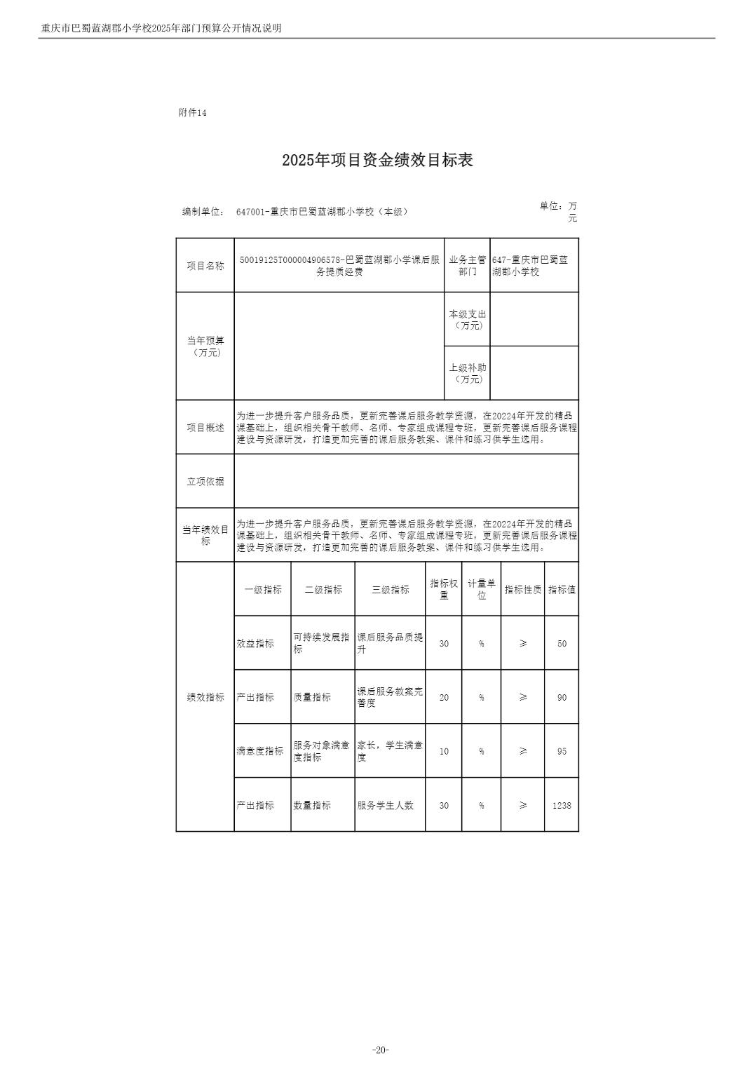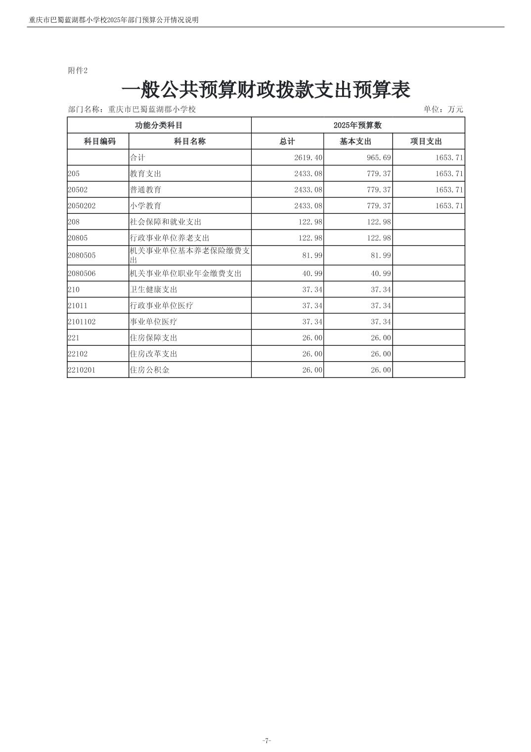 重庆市巴蜀蓝湖郡小学校2025年单位预算情况说明