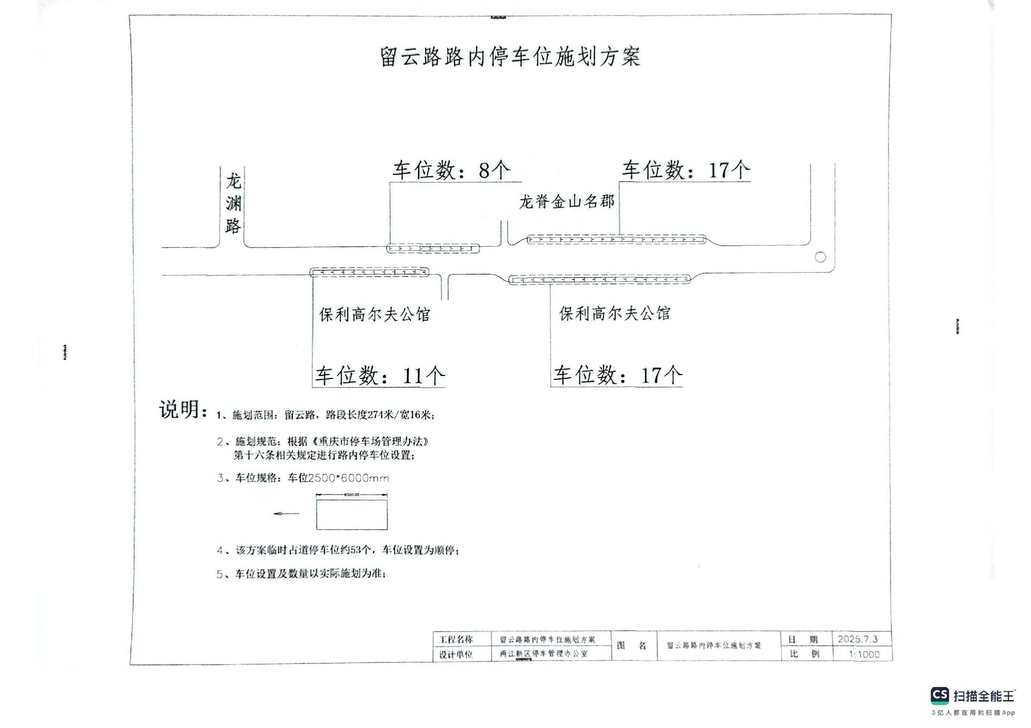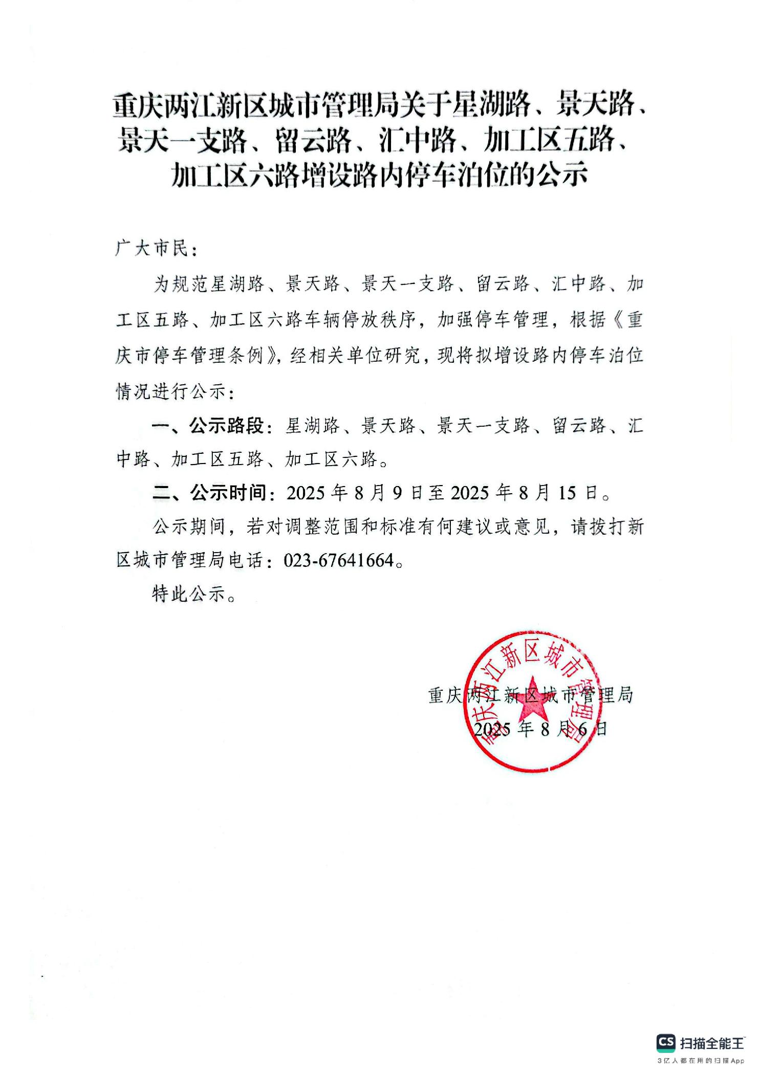 关于星湖路、景天路、景天一支路、留云路、汇中路、加工区五路、加工区六路增设路内停车泊位的公示